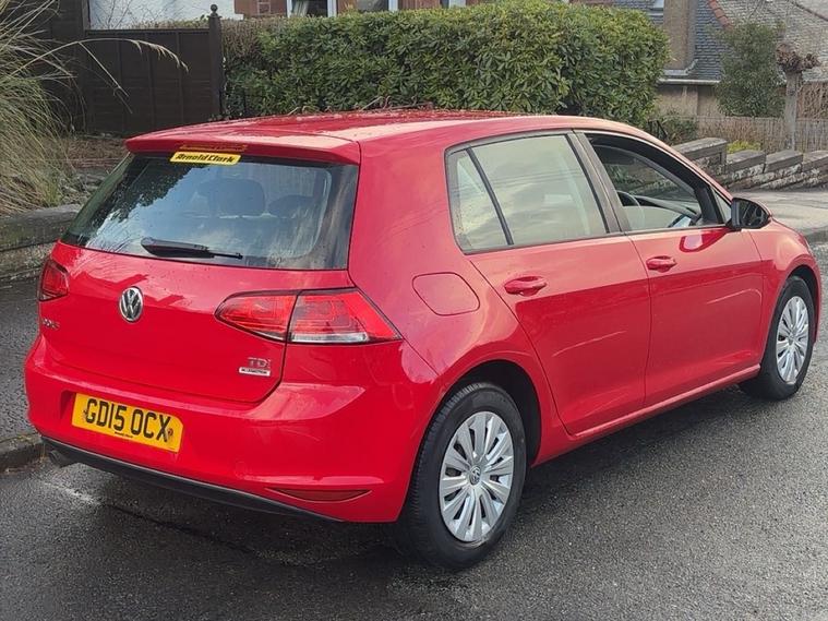Volkswagen Golf S Bluemotion Tech 1.6 TDI, 2015 15 reg, red with black interior, 5 speed manual, Bluetooth, electric windows and mirrors, aircon, MOTd may 2026, only £20 a year road tax, 110, 000 miles, 2 keys, service history , nice car inside and out £4995