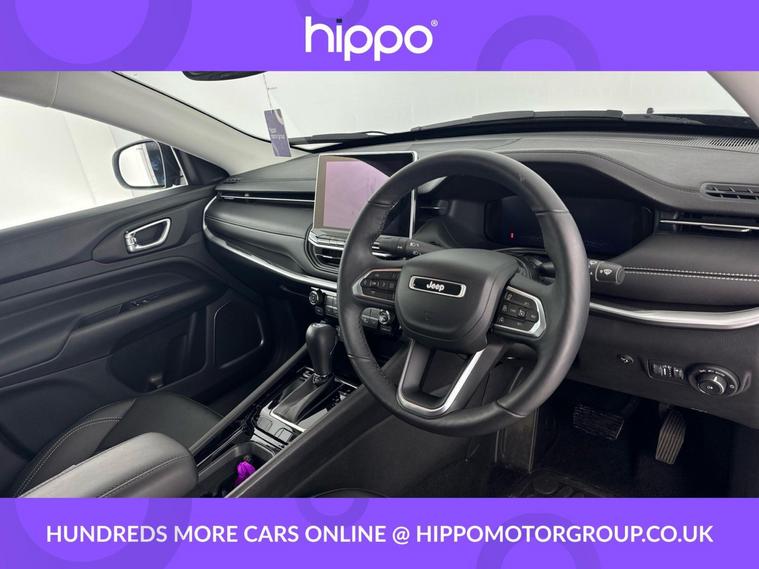 Presenting this Jeep Compass 1.5 T4 e-Hybrid MHEV Altitude SUV, finished in a sophisticated High Gloss Black with striking 18-inch diamond cut alloy wheels. With only 4, 692 miles on the clock, this petrol hybrid offers the efficiency of Mild Hybrid Electric Vehicle (MHEV) technology combined with a Dual Clutch Transmission (DCT) and Front Wheel Drive (FWD) configuration, compliant with Euro 6 emissions standards. This five-door SUV is equipped with advanced parking sensors and Park Assist, enhancing manoeuvrability in tight spaces and making everyday driving more convenient. At Hippo Approved, we pride ourselves on providing a wide selection of vehicles to suit various preferences and budgets. Every car undergoes a rigorous 130-point quality and safety inspection at our state-of-the-art £3 million preparation centre, giving you complete peace of mind. Additionally, we offer tailored finance packages for both personal and business customers, ensuring it's simple and straightforward to secure your ideal vehicle.