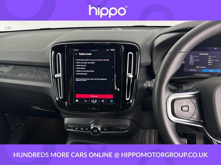 Presenting this Volvo XC40 Recharge 69kWh Plus SUV, an all-electric automatic model offering 231 PS of power and a refined driving experience. The vehicle has covered 46, 784 miles and features an array of convenient and stylish features, including a Rear Park Assist Camera for enhanced reversing and parking, as well as striking 19-inch alloy wheels with a 5 double spoke design--diamond cut and finished in black for an eye-catching appearance. This electric SUV provides an excellent combination of performance, zero-emission motoring, and practical versatility, suitable for business or personal use. The Volvo XC40 offers comfortable interior space and a comprehensive range of safety and driver-aid technologies, supporting everyday usability and peace of mind. Hippo Approved is known for a wide selection of vehicles suited for various needs and budgets. Each car undergoes a rigorous 130-point quality and safety inspection at our state-of-the-art £3 million preparation centre, ensuring your peace of mind. Additionally, we offer tailored finance packages for personal and business use, making it easy to acquire your ideal car.