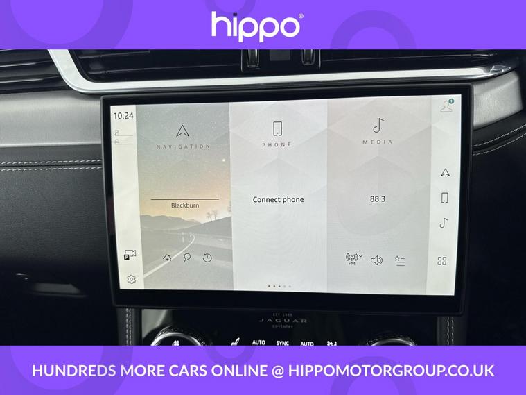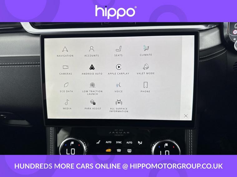 Hippo Approved is known for a wide selection of vehicles suited for various needs and budgets. Each car undergoes a rigorous 130-point quality and safety inspection at our state-of-the-art £3 million preparation centre, ensuring your peace of mind. Additionally, we offer tailored finance packages for personal and business use, making it easy to acquire your ideal car. Presenting the Jaguar F-PACE, a sophisticated SUV with a distinctive Santorini Black exterior. This 2.0 D200 MHEV R-Dynamic SE model has covered 43, 326 miles and is designed to deliver both performance and elegance. The vehicle features a fixed panoramic roof, providing a sense of openness and enhancing the overall driving experience. Notable for its 20in alloy wheels with a 5 split-spoke style (5036 design), the F-PACE boasts both style and functionality. For your convenience, this SUV is equipped with park assist technology and both front and rear parking aids, ensuring effortless manoeuvring in tight spaces. The privacy glass adds an extra touch of exclusivity, enhancing comfort and providing an added layer of discretion. With its Diesel Auto AWD engine complying with Euro 6 standards, the Jaguar F-PACE stands as a reliable, environmentally conscious choice.