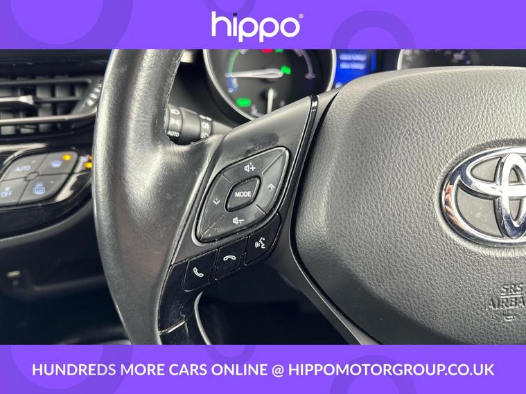 Offered by Hippo Approved is a Toyota C-HR 1.8 VVT-h Design SUV 5dr Petrol Hybrid CVT Euro 6 (s/s) with 57, 127 miles on the clock. This well-equipped vehicle features 18-inch Dynamic alloy wheels, a 3-spoke leather steering wheel with integrated multimedia controls, and a 4.2-inch colour TFT multi-information display. The cabin benefits from dual-zone automatic air conditioning and heated seats for both the driver and front passenger, while rear privacy glass and a black diffuser provide stylish exterior touches. For convenience and safety, it includes a comprehensive Parking Pack with parking sensors, Intelligent Park Assist (IPA), and a reversing camera. The multimedia system consists of a Toyota Touch 2 with a 7-inch display and integrated DAB digital radio, alongside Touch 2 with Go Navigation, keeping you fully connected and on track. This vehicle is part of Hippo Approved's extensive range, suitable for various preferences and budgets. Every car undergoes a rigorous 130-point quality and safety inspection at our state-of-the-art £3 million preparation centre, ensuring your peace of mind. Furthermore, Hippo Approved offers tailored finance packages for both personal and business users, making your next vehicle easy to obtain.