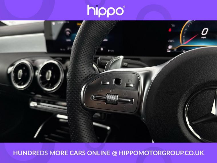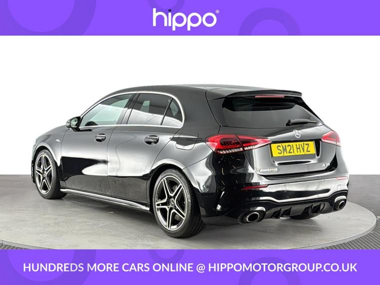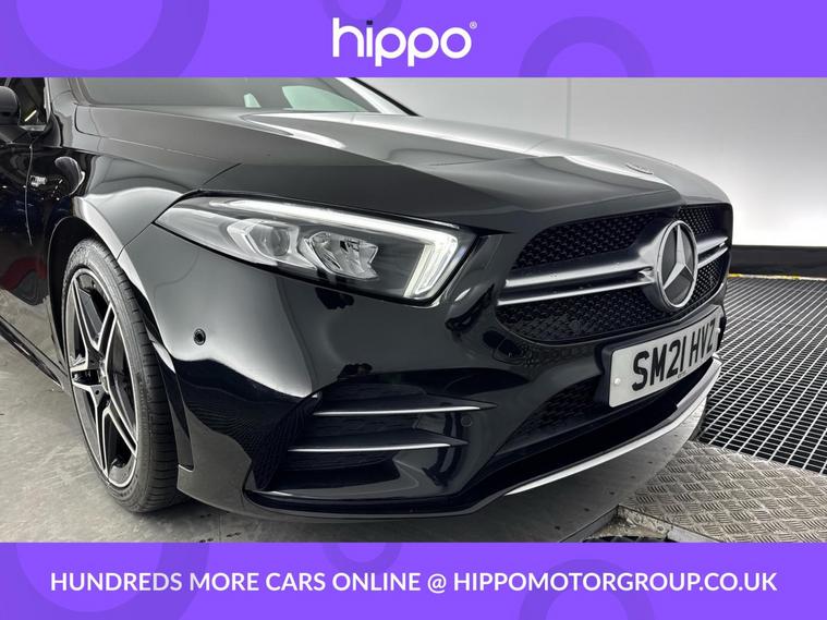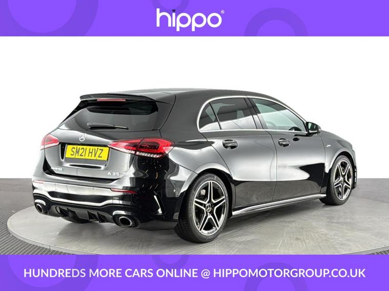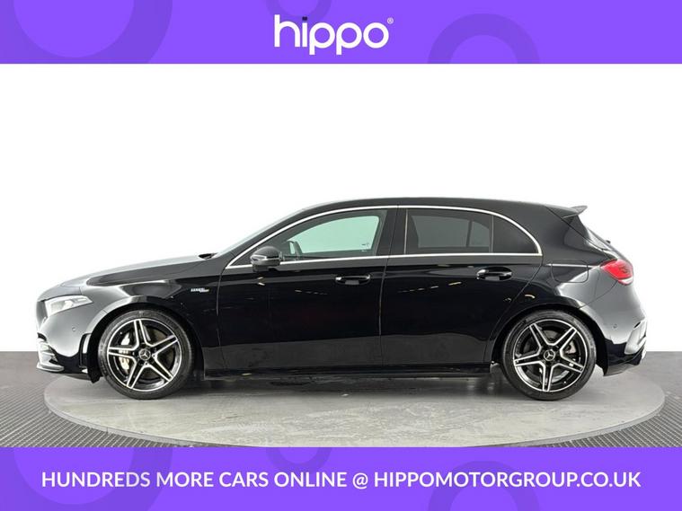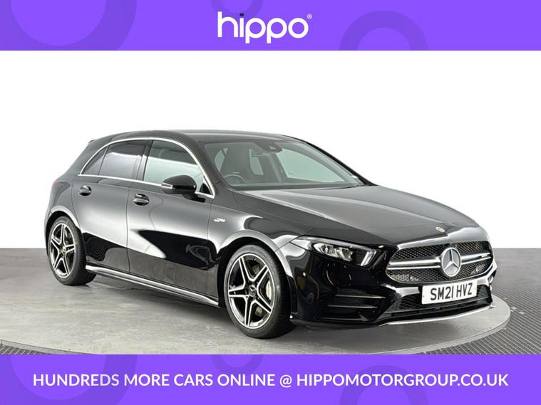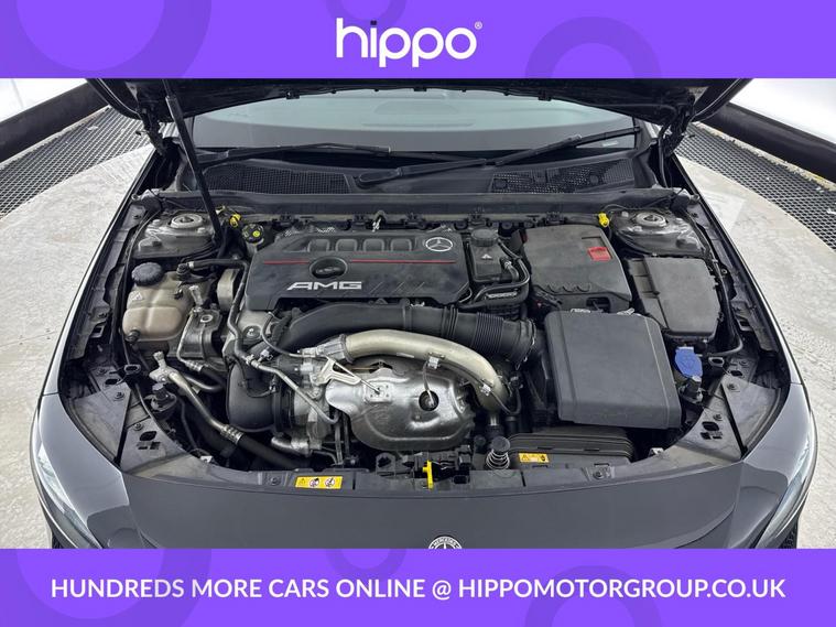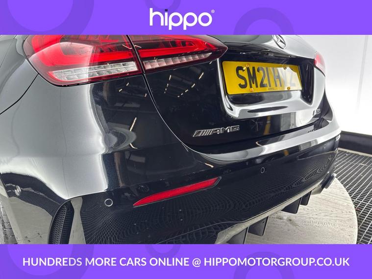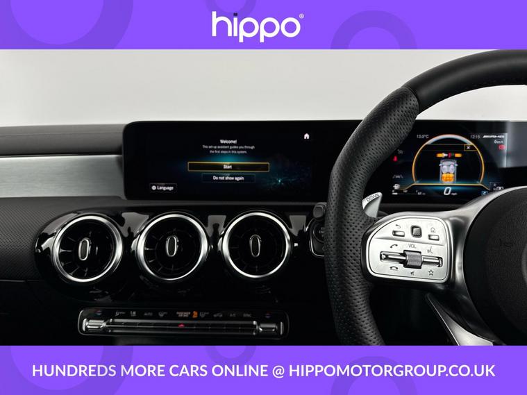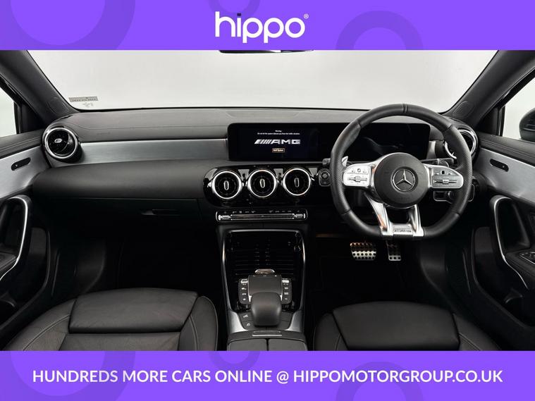 Mercedes-Benz A Class 2.0 A35 AMG Executive Hatchback 5dr, Petrol, SpdS DCT 4MATIC Euro 6 (s/s), producing 306 ps, with only 21, 449 miles on the clock. This impressive A Class comes equipped with 18-inch AMG 5 Twin Spoke alloy wheels in a bi-colour finish and the AMG Executive Package. Inside, you'll find THERMOTRONIC luxury automatic climate control with dual-zone adjustment and a clear display, as well as the Seat Comfort Package for greater support during your journey. The steering wheel features AMG performance styling in Nappa leather, complete with silver-coloured aluminium gearshift paddles. An advanced 7-inch instrument display keeps key information easily accessible. Entertainment and connectivity are enhanced by a 100W Mercedes-Benz sound system, DAB digital radio tuner, hard-disk navigation, and dual Bluetooth interface with two Type-C USB ports. The Light and Sight Package, privacy glass, and reversing camera with 180-degree parking guidelines add both style and practical assistance. Cruise control with limiter further enhances comfort on longer trips. Hippo Approved is known for a wide selection of vehicles suited for various needs and budgets. Each car undergoes a rigorous 130-point quality and safety inspection at our state-of-the-art £3 million preparation centre, ensuring your peace of mind. Additionally, we offer tailored finance packages for personal and business use, making it easy to acquire your ideal car.