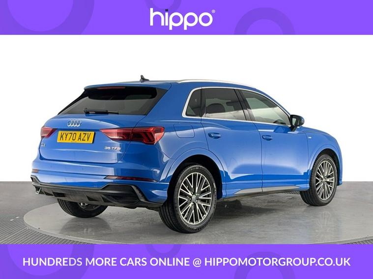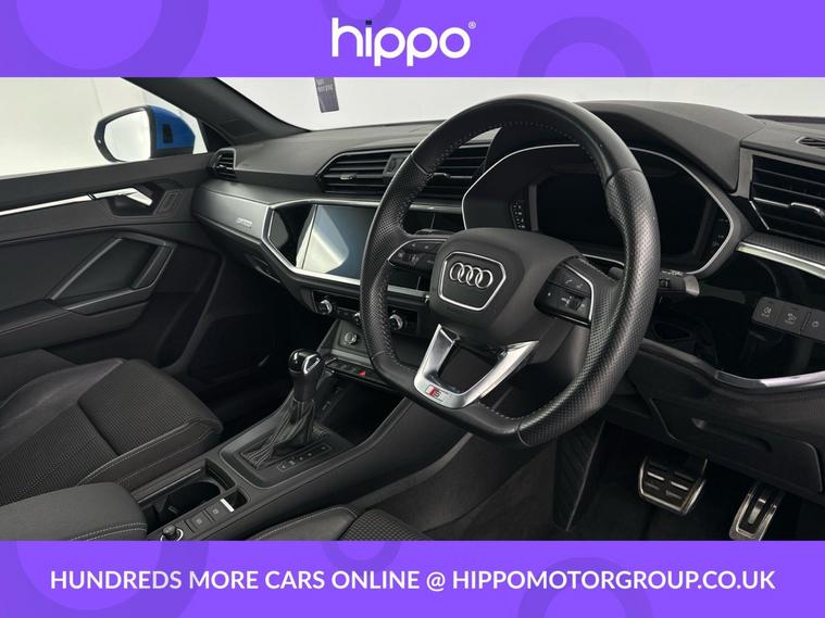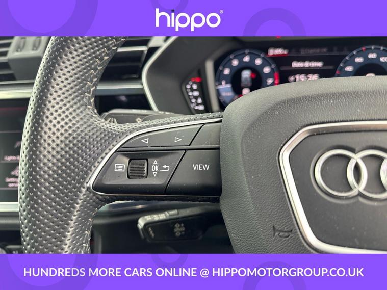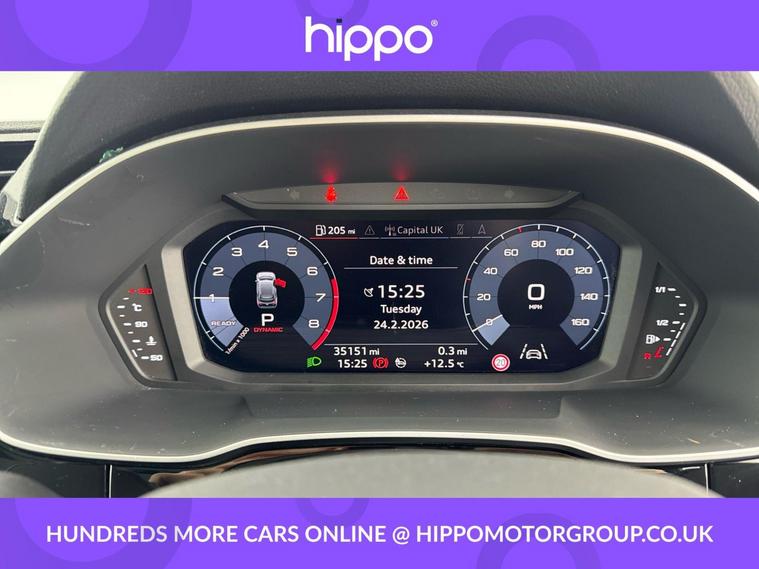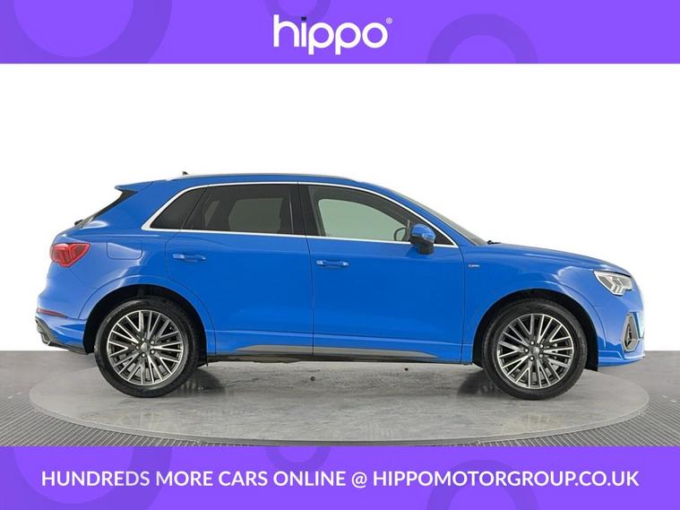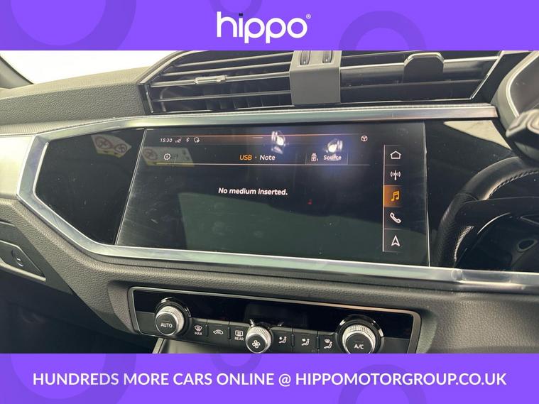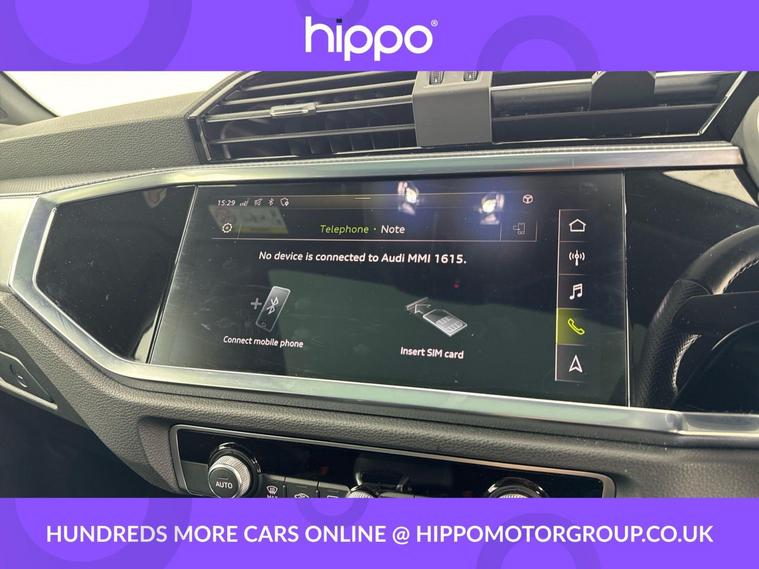 Presenting the Audi Q3 1.5 TFSI CoD 35 S line SUV, finished in a refined style and boasting a mileage of just 34, 800 miles. This model is equipped with dynamic 19in alloy wheels and features the distinctive S line 3-spoke leather multi-function steering wheel, offering enhanced grip and sporty contrast stitching. The interior benefits from the ambient lighting pack, creating a sophisticated atmosphere, and enjoys advanced technology such as the Audi Virtual Cockpit with a 10.25in display. A 10.1in high-resolution MMI Navigation Plus touchscreen and Audi Smartphone Interface with wireless Apple CarPlay provide seamless connectivity. Practical extras include Bluetooth connectivity, DAB digital radio, cruise control with a speed limiter, and dual-zone electronic climate control. Externally, privacy glass ensures security and style, while rear parking sensors make manoeuvring easy and safe. Hippo Approved is known for a wide selection of vehicles suited for various needs and budgets. Each car undergoes a rigorous 130-point quality and safety inspection at our state-of-the-art £3 million preparation centre, ensuring your peace of mind. Additionally, we offer tailored finance packages for personal and business use, making it easy to acquire your ideal car.