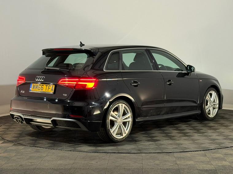 2017 Audi A3 S Line 2.0 diesel TDI 5 door hatchback finished in black and offered by Noahs Automotive Ltd in Nuneaton. This premium sporty compact hatchback combines sharp Audi styling refined dynamics and exceptional diesel efficiency making it an outstanding choice for commuters families young professionals or anyone seeking modern features low running costs badge prestige and versatile everyday usability in a desirable five door package. The responsive 2.0 litre TDI diesel engine produces 150 BHP with stop start technology delivering confident acceleration smooth power and relaxed cruising paired to a six speed manual gearbox for engaging yet economical driving. With one previous owner and Audi service history this A3 offers excellent peace of mind long term reliability and the assurance of main dealer care. Fuel Economy: 66 MPG combined ensures superb real world efficiency keeping fuel bills minimal. £20 annual road tax is incredibly low. This vehicle will come with a fresh 12 month MOT ready for the new owner. ULEZ and CAZ compliant for unrestricted city and low emission zone access. Supplied with two keys the high specification S Line trim includes eighteen inch alloy wheels bi xenon headlights LED daytime running lights headlight washers rear parking sensors air conditioning digital dual zone climate control cruise control half leather S Line interior front three stage heated seats height adjustable front seats ISOFIX anchor points Audi CD DAB AM FM stereo system pop up digital display satellite navigation system voice control Bluetooth audio and telephone front and rear electric windows rear heated screen automatic lights automatic wipers auto tinting rear view mirror electric heated powerfold door mirrors leather arm rest cup holders 12V battery points electric park brake auto hold adjustable steering column flat bottom multifunctional steering wheel and six speed manual gearbox. The cabin feels premium and practical with supportive seating good rear space and a flexible boot ideal for daily commutes shopping family errands or weekend trips while the S Line styling adds sporty appeal and road presence. This well equipped Audi A3 S Line represents superb value blending contemporary design German engineering advanced convenience features like sat nav heated seats parking sensors and pop up display plus outstanding economy and compliance at an accessible price point. Viewings available seven days a week including evenings by appointment with same day drive away possible and nationwide delivery in twenty four to seventy two hours. Part exchanges welcome with fast fair transparent valuations. Contact Noahs Automotive Ltd today to reserve this excellent Audi arrange a viewing test drive or request HD photos detailed walkaround videos or live video calls we look forward to assisting.