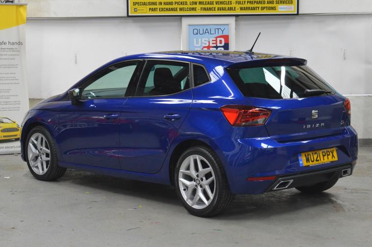 SEAT IBIZA FR TSI 115 S/S 5dr MANUAL HATCHBACK. A SPECTACULARLY VIBRANT SEAT IBIZA WHICH IS IN ALL ROUND PRISTINE CONDITION. THE GLEAMING BODY IS FREE FROM ANY DENTS, DINGS OR SCRATCHES AND THE INTERIOR IS SPOTLESSLY CLEAN AND FRESH. THE CAR HAS CLEARLY BEEN WELL MAINTAINED AND IT COMES WITH A SUPPORTING SERVICE HISTORY AND 2 BRAND NEW FRONT TYRES. A VIEWING IS STRONGLY RECOMMENDED, WE ARE SURE IT WILL NOT DISAPPOINT. SOME OF THE CARS MAIN FEATURES INCLUDE LED DAYTIME RUNNING LIGHTS, REAR PRIVACY GLASS, FRONT FOGS, UNMARKED ALLOY WHEELS, HILL HOLD ASSIST, NORA CLOTH UPHOLSTERY, DUAL ZONE CLIMATE CONTROL, AIR CONDITIONING, 8 INCH COLOUR TOUCH SCREEN, DAB RADIO, BLUETOOTH TELEPHONE CONNECTIVITY WITH AUDIO STREAMING, SATELLITE NAVIGATION, MIRRORLINK TO ALLOW APPLE CARPLAY AND ANDROID AUTO, CRUISE CONTROL, VOICE COMMANDS, AUTO STOP/START, SPLIT/FOLD REAR SEATS, ELECTRIC WINDOWS AND MIRRORS, 2 x KEYS. AS WE ARE AN AA CARS DEALER THIS VEHICLE COMES WITH A FULL AA HISTORY CHECK AND ALSO 12 MONTHS AA BREAKDOWN COVER. EXTENDED AA WARRANTY AVAILABLE. WE ARE ALSO A MEMBER OF THE AA DEALER PROMISE SCHEME. NEW MOT ISSUED ON PURCHASE. WE PRIDE OURSELVES ON THE PRESENTATION OF OUR VEHICLES WHICH ARE FULLY VALETED AND PREPARED TO THE VERY HIGHEST OF STANDARDS. AS A RESULT WE FIRMLY BELIEVE THAT OUR FORECOURT IS UNRIVALLED AND OUR REPUTATION FOR SELLING PREMIUM USED CARS IS SECOND TO NONE. WALK AROUND VIDEO AND DELIVERY OPTIONS ARE AVAILABLE UPON REQUEST.