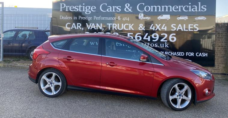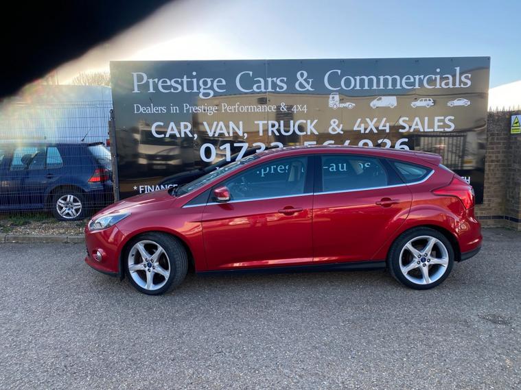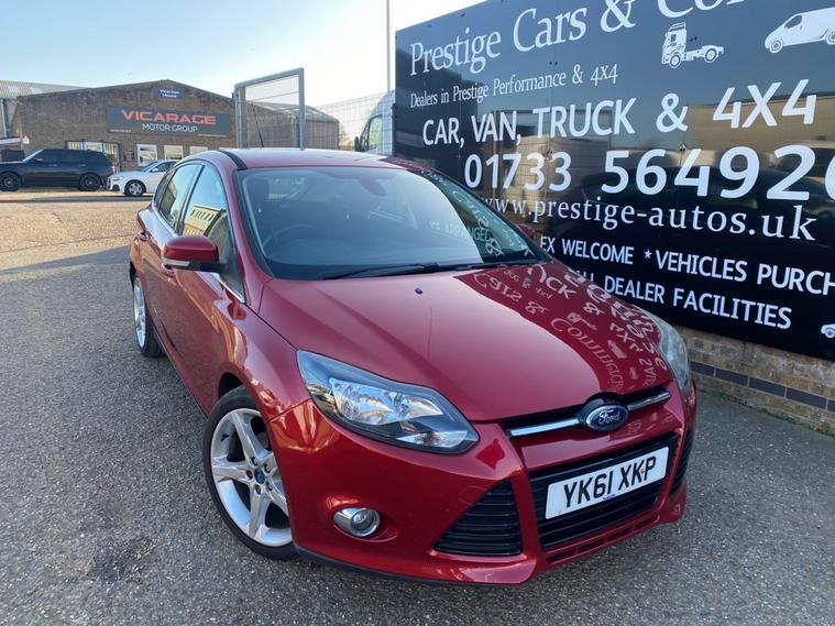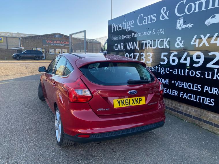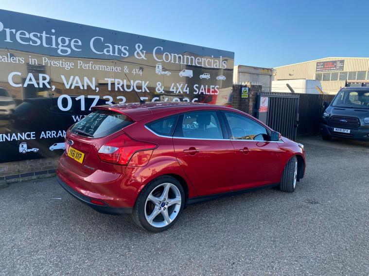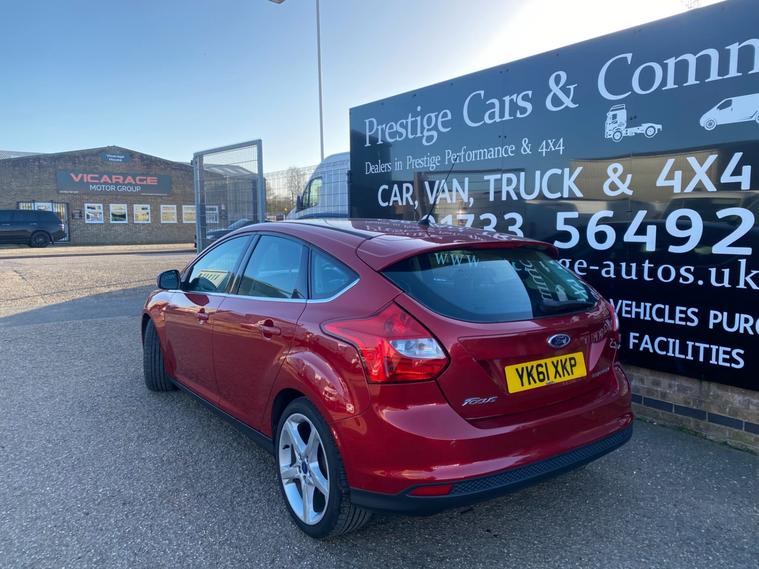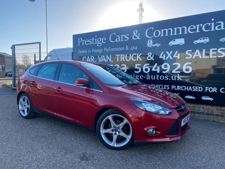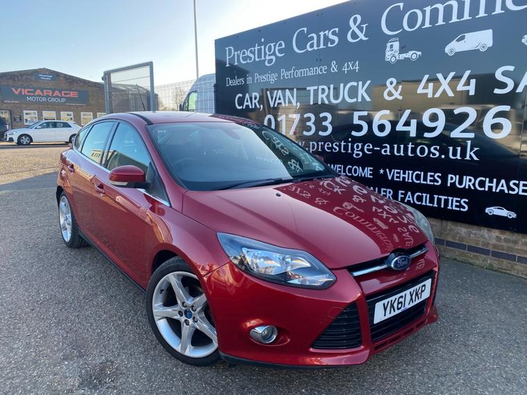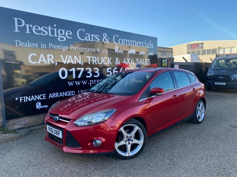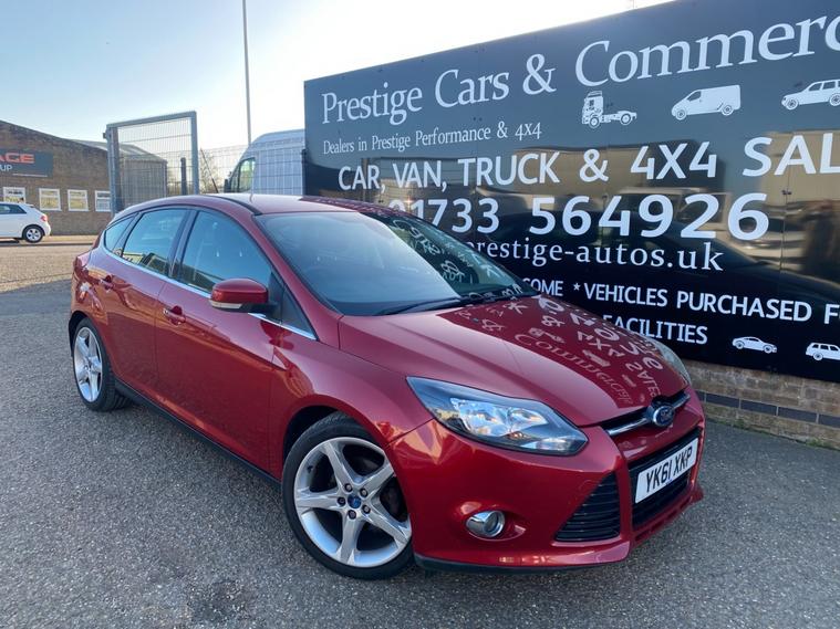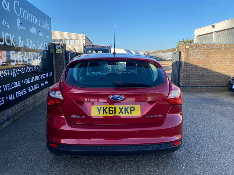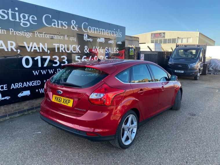 2011 61 REG FORD FOCUS TITANIUM HI SPEC 1.6 TDCI 115PS 5DOOR HATCHBACK COVERED GENUINE 105139 MILES. STUNNING METALLIC CANDY RED PAINTWORK. 2 FORMER KEEPERS, CURRENT OWNER SINCE APRIL 2021. SUPERBLY MAINTAINED AND LOOKER AFTER. FULL SERVICE HISTORY, 14 SERVICES STAMPED IN BOOK INCLUDING 9 BY FORD MAIN DEALER. CAMBELT KIT CHANGED AT 77606 MILES ON 24/02/2023. WILL BE FRESHLY SERVICED PRIOR TO HANDOVER USING GENUINE FORD FILTER AND OIL. JUST HAD NEW FRONT SUSPENSION ARMS BOTH SIDES. CURRENT MOT VALID TILL 12/03/2027 WITH NO ADVISORIES, 6 MONTHS NATIONWIDE PARTS AND LABOUR WARRANTY. FIRST REGISTERED 14/09/2011. 1.6 TDCI 115 BHP ENGINE WITH 6 SPEED MANUAL GEARBOX. BARGAIN ROAD TAX BAND 12 MONTHS PRICED 20 POUNDS. SUPERB ECONOMY COMBINED OFFICIAL FIGURE OF 61 MPG. CRUISE CONTROL. FULLY WORKING AIR CON CLIMATE CONTROL. REAR PARKING SENSORS. FULLY COLOUR CODED PAINTWORK. GREAT CONDITION INSIDE OUT. HEATED FRONT AND REAR SCREENS. FACTORY FITTED SONY CD RADIO MP3 PLAYER. DAB DIGITAL RADIO. VOICE CONTROL COMMAND SYSTEM. USB AUX IN MUSIC MEDIA CONNECT. BLUETOOTH TELEPHONE INTEGRATION. AUTO LIGHTS AND WIPERS. ELEC WINDOWS. ELEC MIRRORS. REMOTE CENTRAL LOCKING. 2 KEYS. DRIVES BEAUTIFULLY. LOVELY LOOKING CAR. SUPERB VALUE.