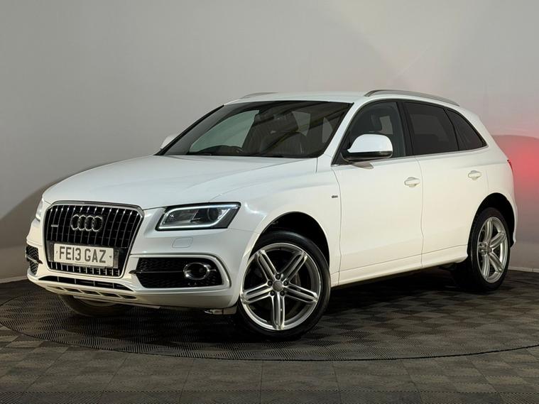 2013 63 Audi Q5 S Line Plus 2.0 diesel TDI Quattro 4WD 4x4 SUV finished in white and offered by Noahs Automotive Ltd in Nuneaton excellent value. This premium powerful and highly capable mid-size SUV combines elegant Audi design commanding performance and confident quattro all wheel drive making it an outstanding choice for families professionals adventurers or anyone seeking luxury refinement advanced technology versatile practicality and all season usability in a desirable package. The torquey 2.0 litre TDI diesel engine produces 140 BHP with stop start technology delivering confident acceleration effortless power and relaxed cruising paired to a six speed manual gearbox for engaging drive. With service history this Q5 offers excellent peace of mind long term reliability and the assurance of proper maintenance. Fuel Economy: 48 MPG combined ensures respectable efficiency for a capable 4WD SUV. MOT valid until December 2026. Supplied with two keys the high specification S Line Plus trim includes twenty inch alloy wheels bi xenon headlights LED daytime running lights headlight washers front fog lights rear privacy glass rear parking sensors air conditioning digital dual zone climate control cruise control full black S Line interior height adjustable front seats ISOFIX anchor points Audi CD AM FM stereo system digital display satellite navigation system voice control Bluetooth audio and telephone front and rear electric windows rear heated screen automatic lights auto tinting rear view mirror electric heated door mirrors electric park brake adjustable steering column multifunctional steering wheel and six speed manual gearbox. The cabin feels luxurious and spacious with premium leather supportive seating generous rear legroom and a massive boot ideal for family trips luggage shopping or work gear while the quattro system adds grip and confidence in wet slippery or variable conditions. This well equipped Audi Q5 S Line Plus represents superb value blending sharp looks badge prestige advanced convenience features like sat/nav parking sensors and dual zone climate plus strong performance and practicality at an accessible price point. Viewings available seven days a week including evenings by appointment with same day drive away possible and nationwide delivery in twenty four to seventy two hours. Part exchanges welcome with fast fair transparent valuations. Contact Noahs Automotive Ltd today to reserve this excellent Audi arrange a viewing test drive or request HD photos detailed walkaround videos or live video calls we look forward to assisting.