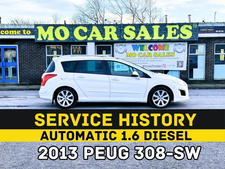 2013 Peugeot 308 SW - estate_____1.6 Diesel_AUTOMATIC_____Mileage: 101k_____MoT: 15 March 2027_____ Road Tax: £16/ pcm_____Former Keepers: 3_____Evo Warranty: 3 months_____Service History_____Sat-Nav_____Bluetooth_____Full Sun-Roof_____CD-Radio_____Alloys Wheels_____x27 Automatic Cars in Store_______Mo Car Sales______ Tundry Way - Toll Bridge Road_______Newcastle - Blaydon________NE21 5SJ