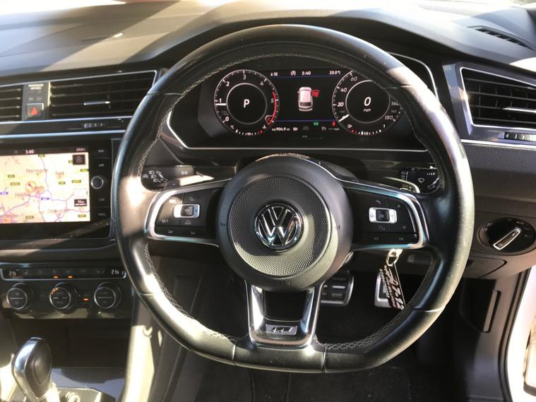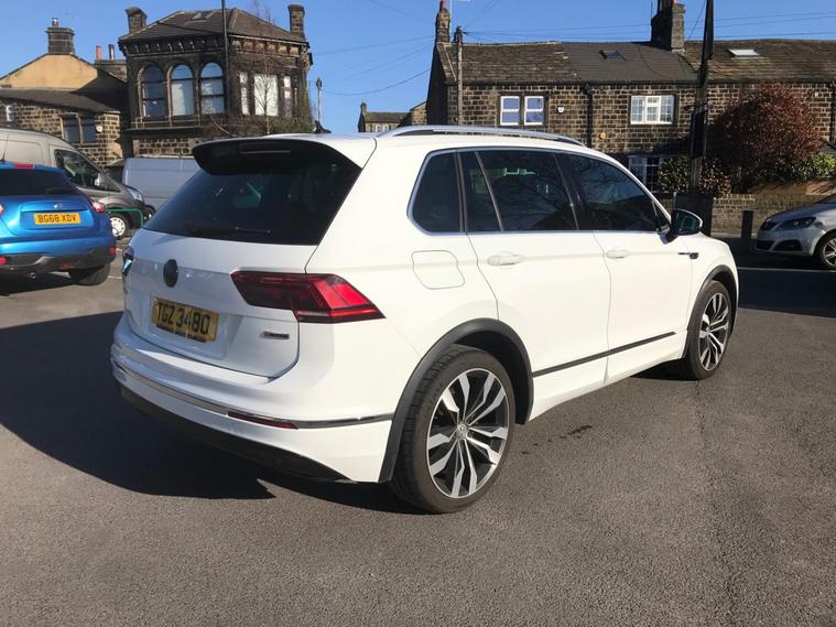 "" FULLY LOADED GENUINE 78551 MILES"" 2018 18 PLATE VOLKSWAGEN TIGUAN 2.0 R-LINE TDI BMT 4MOTION DSG SEMI-AUTOMATIC 5 DOOR, IN PURE WHITE WITH CONTRASTING VIENNA BLACK LEATHER AND CRYSTAL GREY CLOTH INSERTS WITH ""R LINE"" EMBOSSED ON FRONT SEATS, BLACK GLASS ELECTRIC PANORAMIC ROOF, FULL COLOUR SATELLITE NAVIGATION SYSTEM, GENUINE 78551 MILES, FULL SERVICE HISTORY - INTERVALS AT 9736 MILES/ 18817 MILES/ 61506 MILES/ 77169 MILES PLUS A DSG SERVICE AT 77169 MILES....EXTRAS INCLUDE.....2 Keys, Air Conditioning Dual Climate Control, Adaptive Cruise Control, Discover Navigation Touch-Screen Navigation-Radio With Car-Net Guide And Inform System, Black Glass Panoramic Sunroof, Front R-Line Embossed Sports Seats, Bluetooth Phone Connectivity, Limited Edition Suzuka 20 inch 5 Twin Spoke Alloy Wheels, Sports Chrome Pack Includes Chrome Trimmed Side Windows/Chrome Trims On Lower Edge of Car Front Side And Rear/Side Door Sills With Chrome Inserts/ Chrome Inserts Side Skirts And Rear Bumpers With Chrome Exterior Insert/Exterior Mirror Housings And Door Handles In Body Colour, Colour Coded R-Line Exterior Sports Body Kit With Body Coloured Rear Spoiler, Silver Anodised Sports Roof Rails, Sports Suspension, Driver Profile Selection Includes- Eco - Normal And Sport Modes, Heated Front Seats, R-Line Leather Trimmed Multifunction Steering Wheel, Gearshift Knob in Leather, Front And Rear Electric Windows, Heated Electrically Folding Door Mirrors, Automatic Headlamp Activation With Separate Daytime Running Lights, Leaving Home Feature And Manual Coming Home Feature, Front Fog Lights with Static Cornering Function, Dynamic Light Assist, 3D Effect Cherry Red LED Rear Tail Lights, LED Headlights With Dynamic Light Assist, Front And Rear Parking Sensors, Rotary Switch by Gear Stick With Option for Onroad-Offroad-Snow And Offroad Individual Driving Modes, Front Windshield Wipers With Intermittent Operation And Rain Sensor, Heated Front Washer Nozzles, 65 Percent Tinted Glass, Active Info Display, Car-Net App Connect, Multifunction Colour Display, Tyre Pressure Loss Indicator, Lane Assist, Fatigue Assist Drowsiness Detection, Front Assist With Pedestrian Monitoring Detection And City Emergency Braking, Automatic Hazard Light Activation Under Heavy Braking, ABS with ASR, EDL, EDTC And XDS, Active Bonnet, Electromechanical Power Steering Airbag For Driver And Front Passenger, SRS Airbag System Includes-Driver And Front Passenger Knee Airbag/Front Passenger Airbag Deactivation, Combined Alarm Central Door Locking System With Radio Remote Control Plus Alarm With Interior Protection And Electronic Engine Immobiliser, Spare Wheel - Space Saver Steel, 12V Power Outlet on the Rear Centre Console, Super Sound Surround 8 Loudspeakers Radio MIB Composition Media 8in Colour Touchscreen CD/SD Slot - AUX-IN Jack And DAB Radio Entertainment Stereo System...PX Welcome..."" Do Not Miss Out On This Fantastic Opportunity"" What A Peace Of Kit Fully Loaded Stunning Colour Extra Combination A Pleasure To Drive"" Grab Yourself A Real Bargain"" COMES WITH A FULL 12 MONTHS MOT PLUS AN OIL AND FILTER SERVICE PLUS YOU GET OUR WARRANTY AND A 12 MONTHS AA BREAK DOWN WARRANTY ALL WITHIN THE PRICE.. Email For Further Details...POSSIBLE FREE DELIVERY THROUGHOUT THE UK (Subject to T&C) PLEASE ASK FOR DETAILS