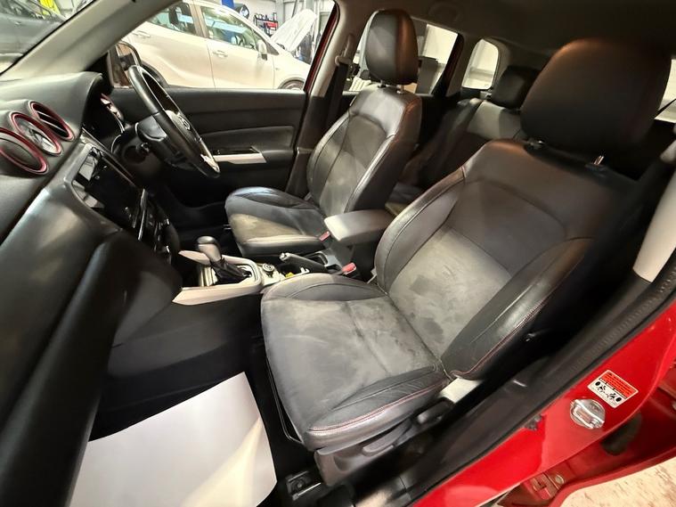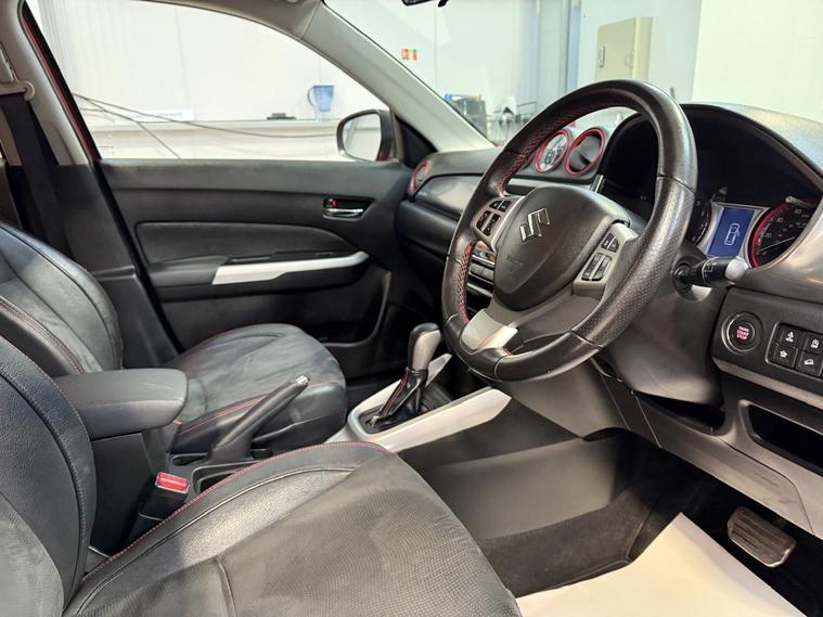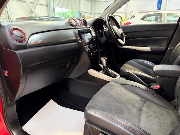 Red Gloss Paint with Black Half Leather Interior, 17in Alloy Wheels, Roof Rails in Silver, Front & Rear Radar Type Parking Sensors, Reversing Camera, Daytime Running Lights, Front & Rear Fog Lights, Automatic Headlights, Front & Rear Electric Windows, Rear Privacy Glass, Heated & Electrically Adjustable Powerfold Door Mirrors, Automatic Windscreen Wipers, Heated Rear Screen with Intermittent Wiper, Digital Automatic Climate Control with Air Conditioning, Multifunction Touchscreen Display with Satellite Navigation, Audio System with FM & DAB Radio, Bluetooth Telephone Preparation, Multifunction Paddle Shift Steering Wheel with Tilt & Telelscopic Adjustment, Cruise Control, Speed Limiter, ISOFIX Preparation, 2 x Keys. This SUZUKI VITARA 1.4 Boosterjet S ALLGRIP 5dr Auto is a tidy and well presented example. Conquer any road with this 2016 Suzuki Vitara 1.4 Boosterjet S ALLGRIP, featuring a lively 138 hp turbo petrol engine paired with a smooth automatic transmission and genuine ALLGRIP four-wheel drive for confident performance and up to around 43 mpg. As the range-topping S model, it boasts premium touches like black alloy wheels, sporty styling, keyless entry, navigation, reverse camera, and a versatile interior with ample space, delivering adventure-ready capability wrapped in stylish, reliable Suzuki engineering. This Suzuki comes with a full service history, an MOT until October 2026 and will have a fresh service upon sale. Viewing and test drive is recommended. The Team at Graham Mitchell Automotive are delighted to offer this vehicle to the market with a 3 Month Nationwide Warranty, with options to extend from 12 Months to 3 Years, along with 12 Months Free AA Breakdown Cover. Please note, we operate on a viewing by appointment only basis, as not every vehicle is kept immediately on site. Every vehicle that is offered for sale has a prior multipoint inspection before coming into stock, along with a full HPI Check. Our stock never stays available for long, so secure this vehicle today with a deposit. We accept payment by bank transfer and debit & credit card. To view our entire range of available stock, visit our Website. We are very proud to be a consistent 5* trusted dealer, with our reviews available on Google. We are also proud to be an AA Accredited and Trading Standards approved Dealer. At Graham Mitchell Automotive, we strive for first class customer service and aim to present the best quality stock. Purchase today with peace of mind.