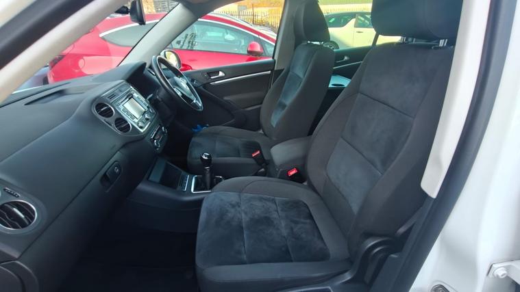 Are you looking for a family car that ticks all the boxes? The VW Tiguan Match has everything you need for a comfortable smooth journey. All the extras you could want including touch screen sat nav, bluetooth, hands free parking assistance and so much more.The 2.0TDi engine makes sure you've got the power you need, as well as being fuel efficient. Beautiful in white with smart alloys finishing off the look.One owner from new, 2 keys, full service history with new cambelt and water pump. Our 3 month standard warranty (which can be extended to 12 months) gives you peace of mind. This car wont stick around for long so get in touch for a test drive. Part exchanges welcome.