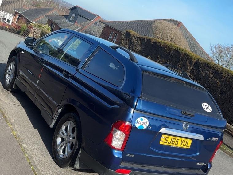 Ssangyong Korando Sports Ex double cab pick up T-Tronic automatic, 2.0 diesel automatic, 2015 65reg, metallic blue with full black leather interior, heated seats, multifunction steering wheel, cruise control, hands free, electric windows and mirrors, 129, 000 miles with full service history and thousands worth of receipts, only 1 owner from new, 2 keys, MOTd November 2026 , got to be the best driving pickup £4995