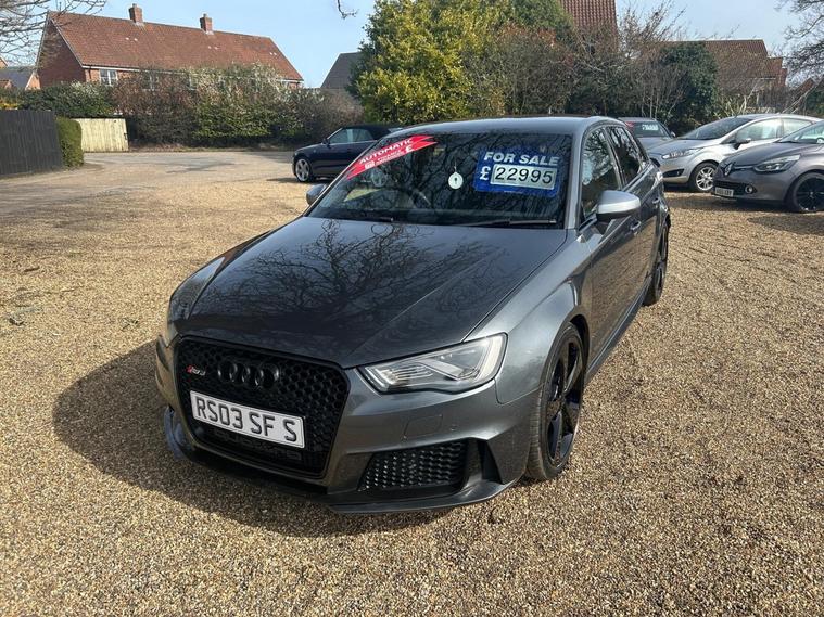 2016 AUDI RS3 NAV TFSI QUATTRO S TRONIC AUTO. 2.5L PETROL ENGINE, 7-SPEED SEMI AUTOMATIC GEARBOX, GREY. 67, 000 MILES FROM NEW AND BACKED BY STACKS OF MAIN DEALER SERVICE HISTORY AND PLENTY OF PAPERWORK. £395 A YEAR ROAD TAX. INCLUDES A FULL 12 MONTH MOT UPON SALE WITH ALL ADVISORIES CORRECTED. JUST HAD A FULL SERVICE COMPLETED INCLUDING NEW SPARK PLUGS AND FRONT BRAKE PADS. 3 MONTH MINIMUM IN-HOUSE WARRANTY FOR YOUR PEACE OF MIND & OPTIONS TO EXTEND UP TO 24 MONTHS. The 2016 Audi RS3 boasts explosive performance with its legendary 2.5 litre engine. Pair that with Audis Quattro AWD system and it provides ridiculous grip in all conditions. This truly is a driving experience that feels special every time you get behind the wheel. Audi RS3 Spec: Full Leather Upholstery, Heated Front Seats, Climate Control in Rear, Pop-Up Media Display with Bluetooth Connectivity, Multiple Driving Modes, Automatic Headlights, Cruise Control, Steering Wheel Controls, Voice Control, Sport Gearbox Mode. £22, 995 - HPI CLEAR - FINANCE AVAILABLE. MINIMUM £500 PART EXCHANGE ON ANY VEHICLE. ALL VEHICLES ARE INSPECTED AND ROAD TESTED BEFORE REACHING THE FORECOURT SO YOU CAN DRIVE AWAY WITH CONFIDENCE. UNIT 7, ROSE CENTRE RETAIL PARK, NORTH WALSHAM, NR28 0DR