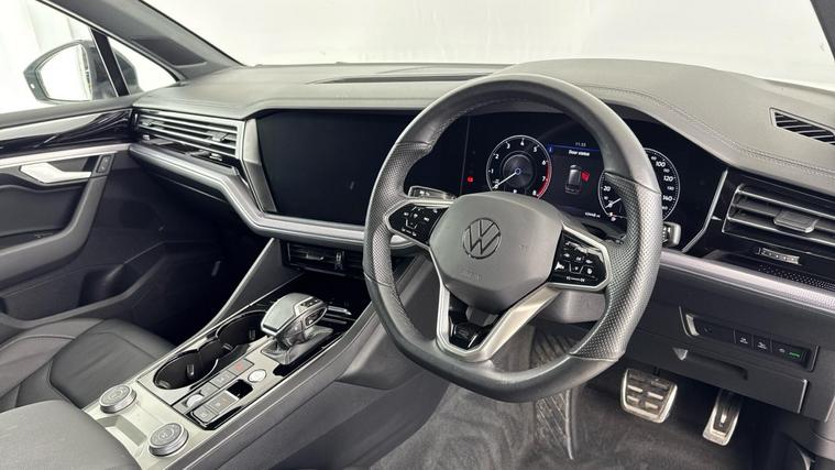For sale is a Volkswagen Touareg 3.0 TSI V6 Black Edition SUV 5dr Petrol Tiptronic 4Motion Euro 6 (s/s) with 340 ps. This vehicle has covered 43, 440 miles and benefits from one recorded service, last completed at 20, 000 miles. The car stands out with its 21-inch Suzuka Glossy Black alloy wheels and a panoramic sunroof, enhancing both its visual appeal and cabin ambiance. The powerful V6 engine, combined with 4Motion all-wheel-drive and Tiptronic automatic transmission, offers a responsive and secure driving experience in various conditions. Hippo Approved is known for a wide selection of vehicles suited for various needs and budgets. Each car undergoes a rigorous 130-point quality and safety inspection at our state-of-the-art £3 million preparation centre, ensuring your peace of mind. Additionally, we offer tailored finance packages for personal and business use, making it easy to acquire your ideal car.