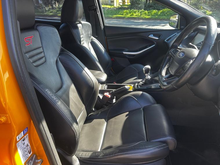 2015 FORD FOCUS 2.0T EcoBoost ST-3 5dr. Finished in the stunning Tangerine Scream, 1 Previous owner and a genuine 60000 Miles with Service history and a Full MOT. ABS, Airbag, Electric windows, Aircon, Parking sensors, Bluetooth, Cruise control, Sat nav, Electric learher Recaro seats. Drives well and is in excellent condition both inside and out. All our vehicles come with a HPI Report and a DVLA printout to verify mileage. This vehicle will include 3 months warranty which is extendable at an additional cost. We are FCA registered and able to arrange finance subject to status, Part exchange welcome. All our vehicles are not on the Baston site, please call to make an appointment. Located in Baston near Peterborough PE6. Any questions please ask.