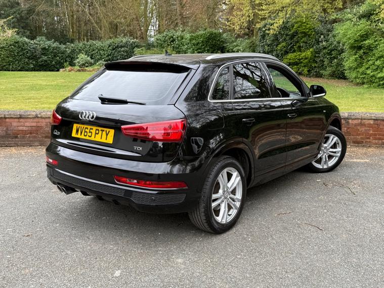 We are delighted to present to you this lovely example of a 2015 Audi Q3 2.0 TDI S Sline finished in metallic black with half black leather interior. This audi comes with full service history including timing belt and water pump replacement, 2 keys, A fresh 12 months M.O.T included, Satellite navigation, Electric opening tailgate, Cruise control, Bluetooth, Dual climate control, 6 Speed gearbox, Auto lights and wipers, Excellent condition inside and out, AA approved garage, Free 12 months AA breakdown cover, HPI Clear, part ex welcome, open 7 days a week (APPOINTMENT ONLY)