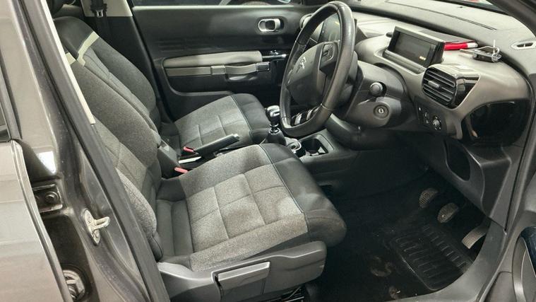 3x3 point rear seatbelts, Curtain airbags, Driver/Front Passenger airbags, Electric child locks, Front lateral airbags, Front seatbelt pretensioners with force limiters, Front side airbags, Height adjustable front seatbelts, Passenger airbag deactivate switch, Road sign information display, Seatbelt warning lamp, Tyre pressure monitor, Alarm, Deadlocks, Locking wheel nuts, Remote central locking, Transponder immobiliser, Active brake assist, Anti-lock Brake System + Electronic Brakeforce Distribution + Emergency Brake Assit, Electronic Stability Programme, Hill start assist, Diesel particulate filter, Electric adjustable/heated/folding door mirrors, Electrochrome rear view mirror, Gloss black door mirrors, Acoustic windscreen, Dark tinted rear windows, Electric front windows - anti trap + one touch, Hinged rear windows, Rear wiper, Body colour door handles, Body coloured bumpers, Gloss black finish B pillar, Gloss black rear insert with Cactus lettering, Rear spoiler, Solid paint, Thermal insulated panoramic sunroof, Wheel arch extensions, 3D effect LED rear lights, Cornering front fog lights, LED daytime running lights, 1/3 to 2/3 split folding rear seats, 3 rear headrests, Comfort seats, Front head restraints, Height adjustable driver's seat, Height adjustable passenger seat, Isofix system on outer rear seats, Lumbar adjustment for driver seat, Carpet mats, Front courtesy lights, Front LED reading lights, Driver/passenger sunvisors and vanity mirrors, 12V socket, Cupholders in centre console, Dashboard storage, Driver's footrest, Front armrest with storage box, Front cupholders x 2, Front door pockets, Leather steering wheel, Load lashing points, Reach + rake adjustable steering column, Rear coat hooks, Rear door pockets with bottle holders, Rear parcel shelf, Rear storage pockets, Wild cloth upholstery, Coffee Break Alert, Cruise control + speed limiter, Driver alert system, Gear selection indicator, Lane departure warning system, Rear parking sensor, Variable power assisted steering, 7"" touch screen, Citroen connect box emergency assist system, Citroen connect Nav with connect box, Exterior temperature gauge with frost alarm, Apple car play/Android Auto, Bluetooth Handsfree Phone Connection, 6 speakers, Auxiliary input socket, Bluetooth audio streaming, DAB Digital radio, RDS radio with MP3 player, Steering wheel mounted controls, USB socket, 17"" Diamond cut cross alloy wheels, Space saver spare wheel