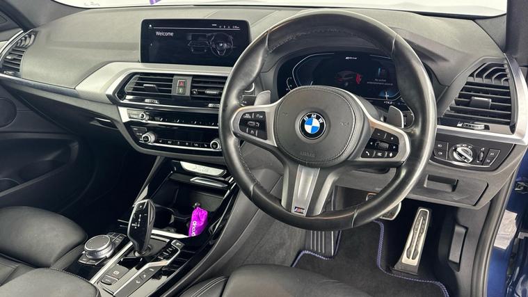 Presenting this BMW X3 2.0 30e 12kWh M Sport SUV, featuring a petrol plug-in hybrid powertrain with xDrive all-wheel drive and automatic transmission, compliant with Euro 6 emissions standards. With 40, 183 miles on the clock, this practical SUV offers a well-rounded blend of performance, comfort, and technology. Highlighted features include 19-inch M Double-spoke alloy wheels in Ferric Grey, automatic air conditioning, and full Bluetooth connectivity with a USB audio interface for seamless communication. The cabin is equipped with BMW Professional Navigation and a 10.25-inch touch display, complemented by the BMW Live Cockpit Professional and an advanced loudspeaker system for an enhanced multimedia experience. Safety and convenience are enhanced by the Parking Assistant, front and rear Park Distance Control, and a Reversing Assist Camera. Enjoy a refined driving experience with cruise control and speed limiter, heated front seats, and the tactile feel of the M Sport leather steering wheel and gear knob. The M Sport Package adds sporty visual details, reinforcing this X3's dynamic character. Hippo Approved is known for a wide selection of vehicles suited for various needs and budgets. Each car undergoes a rigorous 130-point quality and safety inspection at our state-of-the-art £3 million preparation centre, ensuring your peace of mind. Additionally, we offer tailored finance packages for personal and business use, making it easy to acquire your ideal car.