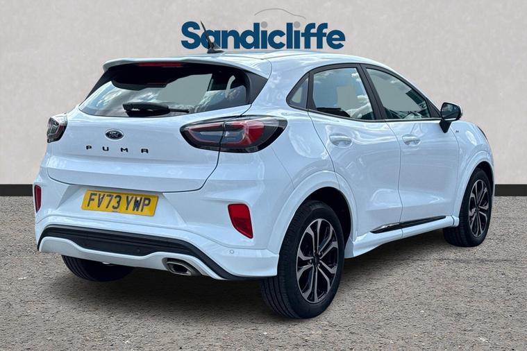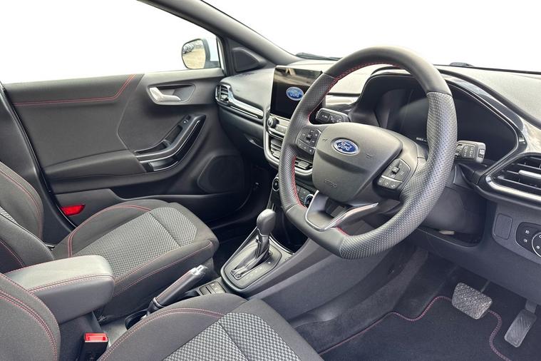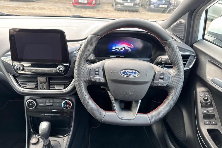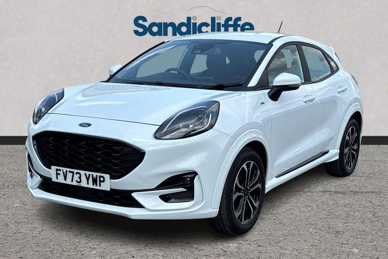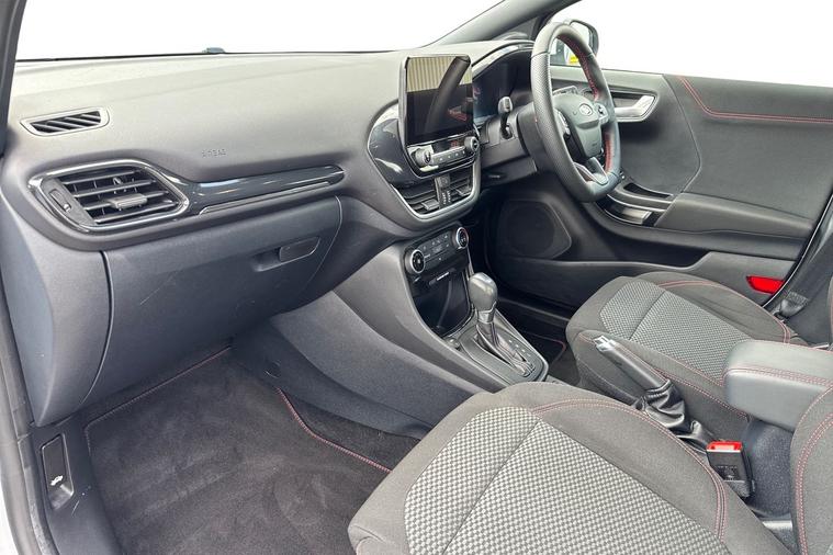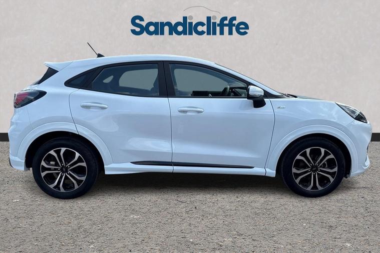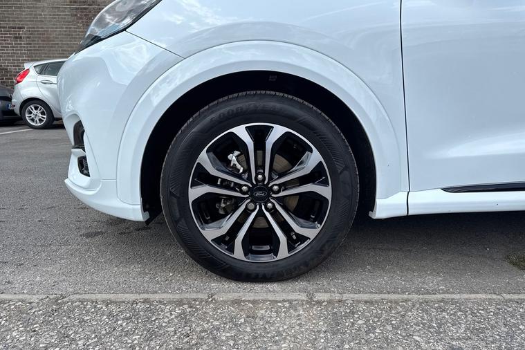 Step into the future of driving with the Ford Puma ST-Line – a bold and intelligent mild-hybrid SUV that combines head-turning style with cutting-edge efficiency. Powered by a 1.0L EcoBoost petrol engine with mild hybrid (mHEV) technology, this 125PS 7-speed automatic delivers a smooth, responsive ride with lower emissions and improved fuel economy. Whether you're navigating city streets or hitting the open road, the Puma offers an engaging and confident drive every time. The ST-Line trim brings a sporty edge, with dynamic body styling, sleek LED signature lighting, ST-Line sports suspension, and exclusive interior detailing that gives the cabin a performance-inspired feel. A raised driving position offers great visibility, while the spacious and cleverly designed interior includes the innovative MegaBox for added boot space and practicality. Inside, you’ll find a modern infotainment system with an 8-inch touchscreen, Ford SYNC 3, Apple CarPlay and Android Auto, as well as a fully digital instrument cluster. Comfort and convenience are enhanced with features like climate control, rear parking sensors, lane keeping assist, and keyless start, all designed to make everyday driving easier and more enjoyable.