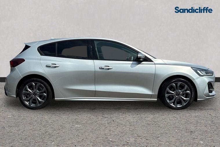 Sandicliffe Nottingham FordStore is proud to present this 2022 Ford Focus 1.0 EcoBoost ST-Line 5dr, finished in stunning Moondust Silver. This sleek and efficient Hatchback offers a dynamic driving experience, modern technology, and excellent fuel economy, making it an ideal choice for families and long journeys. Engine: Powering this Vehicle is a 1.0-litre EcoBoost Petrol engine, this Focus delivers Plenty of strong performance partnered with enhanced efficiency making it perfect for both city driving and motorway cruising. Tech and other features: This model has equipped, 18-inch alloy wheels, ST-Line eye catching body styling, LED daytime running lights, and rear parking sensors. Inside, enjoy a touchscreen infotainment system with Apple CarPlay & Android Auto, Satellite Navigation, Climate Control, Bluetooth connectivity, and Cruise Control, ensuring a comfortable and connected drive. With an insurance group of 12E, this Ford Focus is a stylish and practical choice. As a trusted retailer, our technicians ensure all our vehicles are prepared to the highest standard. For added peace of mind, we also provide a minimum 6-month MOT. Don’t miss out—experience the 2022 Ford Focus ST-Line at Sandicliffe Nottingham FordStore. Contact us today to arrange a test drive!