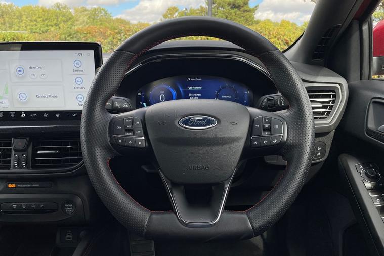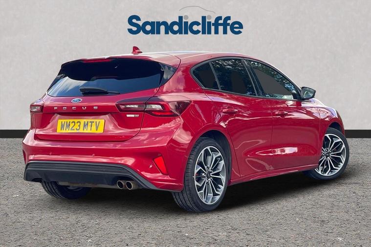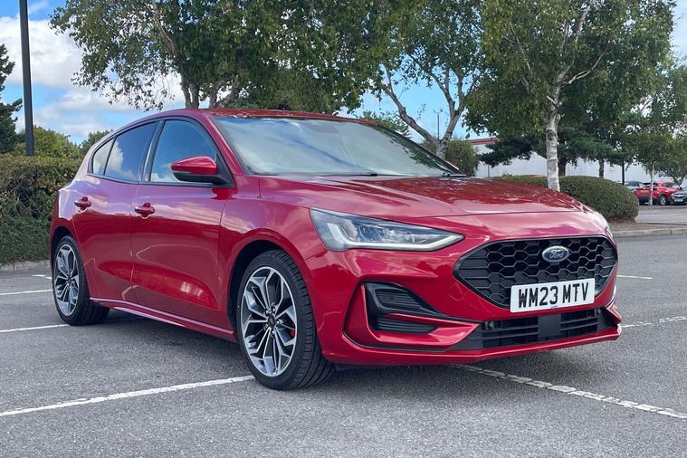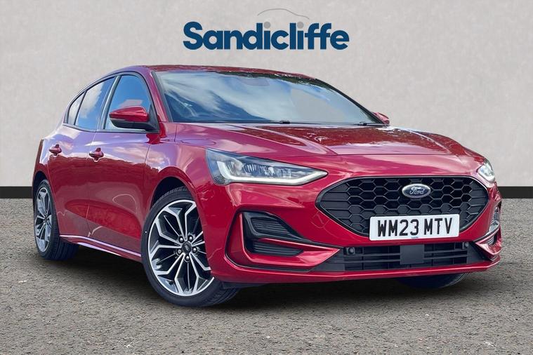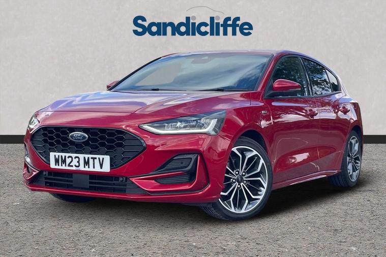 Sandicliffe Nottingham FordStore is proud to present this 2023 Ford Fosuc 1.0 EcoBoost ST-Line X 5dr, finished in stunning Fantastic Red. This sleek and efficient Hachback offers a dynamic driving experience, modern technology, and excellent fuel economy, making it an ideal choice for families and long journeys. Engine: Powering this Vehicle is a 1.0-litre EcoBoost Petrol engine, this Focus delivers Plenty of strong performance partnered with enhanced efficiency making it perfect for both city driving and motorway cruising. Service History Tech and other features: This model has equipped, 18-inch alloy wheels, ST-Line eye catching body styling, LED daytime running lights, and rear parking sensors. Inside, enjoy a Full leather interior with heated seats and a 8 way driver electric adjustment, touchscreen infotainment system with Apple CarPlay & Android Auto, Satellite Navigation, Climate Control, Bluetooth connectivity, and Cruise Control, ensuring a comfortable and connected drive. With an insurance group of 12E, this Ford Focus is a stylish and practical choice. As a trusted retailer, our technicians ensure all our vehicles are prepared to the highest standard. For added peace of mind, we also provide a minimum 6-month MOT. Don’t miss out—experience the 2023 Ford Focus ST-Line X at Sandicliffe Nottingham FordStore. Contact us today to arrange a test drive!
