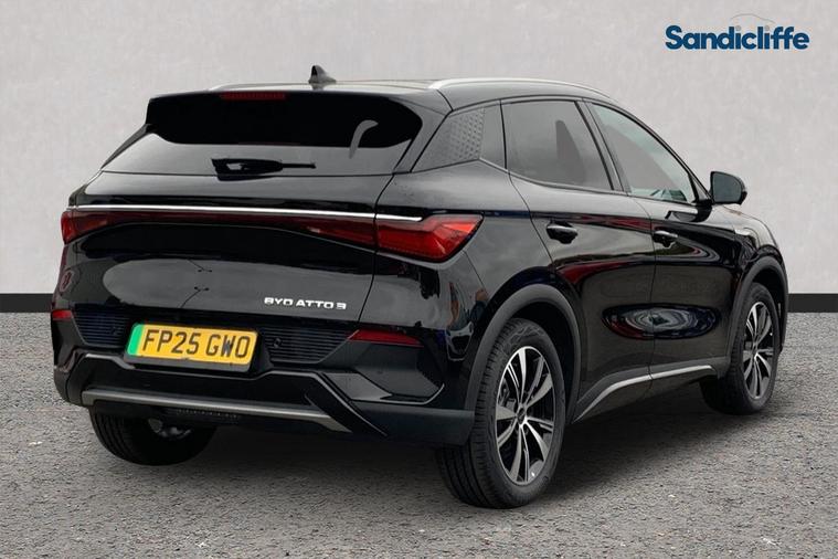 This 2025 BYD Atto 3 Design is presented in excellent condition, offering you a virtually new driving experience. As a fully electric vehicle, it boasts a substantial 60 kWh battery, providing an impressive maximum range of 260 miles on a full charge. Recharging at home is convenient, taking approximately 9 hours and 42 minutes with a 7kW charger, while rapid public charging can replenish the battery from empty to 80% in just 40 minutes. The BYD Atto 3 Design is equipped to impress, featuring a large boot space that offers ample room for all your luggage and shopping needs, setting it apart from many other vehicles in its class. This electric SUV combines practicality with advanced technology, making it an ideal choice for those seeking an efficient and spacious mode of transport.