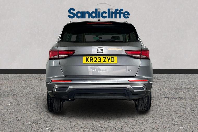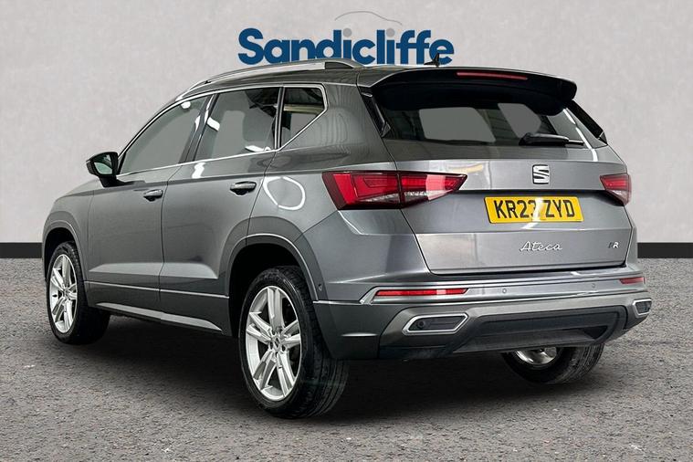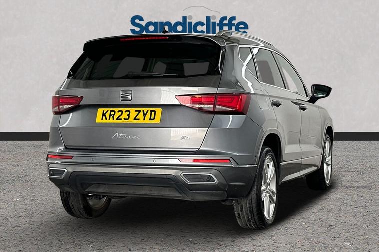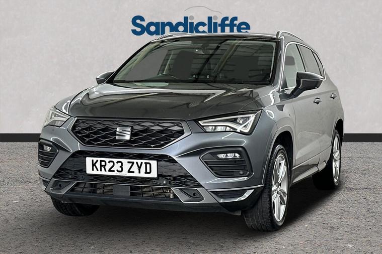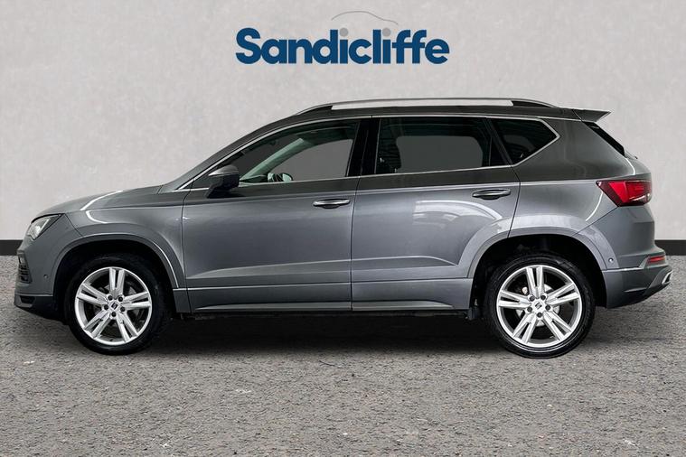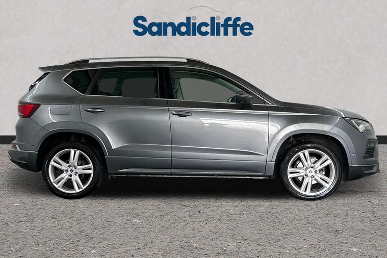 With its MOT valid until May 2026, this 2023 SEAT Ateca TSI EVO FR offers excellent peace of mind. This stylish FR trim model is powered by an efficient 1.5 litre petrol engine, meeting Euro 6 emissions standards. It has been well maintained, with its last service completed on 11th April 2025 at 35, 147 miles, ensuring it is in great condition for its next owner. The SEAT Ateca is known for its practicality, boasting a large boot space perfect for families or those who need extra room for luggage or shopping. This particular model also stands out with its low CO2 emissions, making it a more environmentally conscious choice. Furthermore, its performance is impressive, capable of accelerating from 0 to 62 miles per hour in just 9.0 seconds, demonstrating a good balance between efficiency and responsiveness. This exceptional vehicle boasts a wealth of premium features, including Satellite Navigation, Cruise Control, Bluetooth, Front & Rear Parking Sensors, Apple CarPlay & Android Auto. The insurance group for this vehicle is 18E, and the annual road tax is just £195. As a main Ford retailer, our technicians are highly qualified and Ford certified, ensuring that our vehicles are meticulously prepared and maintained. Additionally, we offer a minimum 6-month MOT for added assurance. Don't miss out on this exceptional opportunity. Experience the perfect blend of style, comfort, and cutting-edge technology with the Seat Ateca at Sandicliffe Ford Loughborough. This car is Located at our Loughborough site Derby Road Loughborough LE115HN