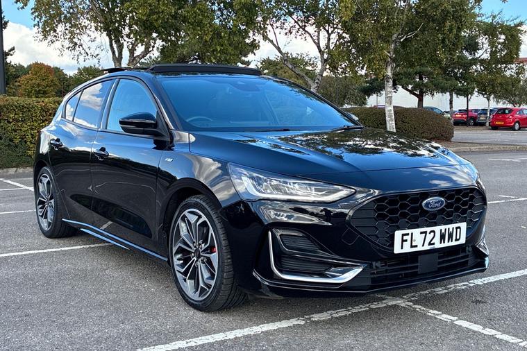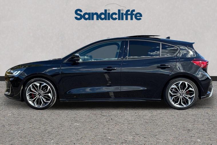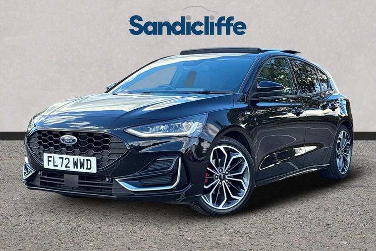 Sandicliffe Nottingham FordStore is proud to present this 2022 Ford Focus 1.0 EcoBoost ST-Line Vignale 5dr, finished in stunning Agate Black. This sleek and efficient Hatchback offers a dynamic driving experience, modern technology, and excellent fuel economy, making it an ideal choice for families and long journeys. Engine: Powering this Vehicle is a 1.0-litre EcoBoost Petrol engine, this Focus delivers Plenty of strong performance partnered with enhanced efficiency making it perfect for both city driving and motorway cruising. Tech and other features: This model has equipped, 18-inch alloy wheels, ST-Line eye catching body styling, LED daytime running lights, and rear parking sensors. Inside, enjoy a touchscreen infotainment system with Apple CarPlay & Android Auto, Satellite Navigation, Climate Control, Bluetooth connectivity, and Cruise Control, ensuring a comfortable and connected drive. With an insurance group of 12E, this Ford Focus is a stylish and practical choice. As a trusted retailer, our technicians ensure all our vehicles are prepared to the highest standard. For added peace of mind, we also provide a minimum 6-month MOT. Don’t miss out—experience the 2022 Ford Focus ST-Line Vgnale at Sandicliffe Nottingham FordStore. Contact us today to arrange a test drive