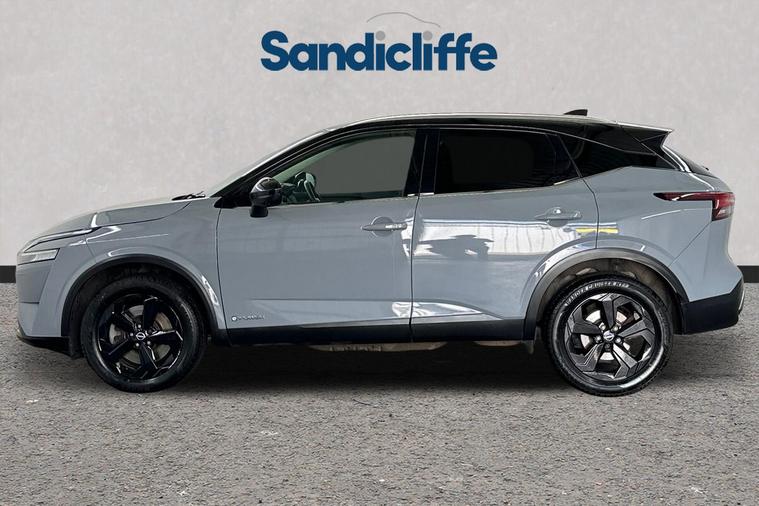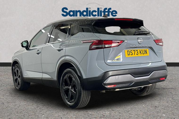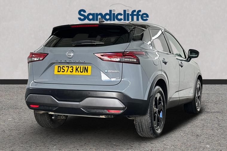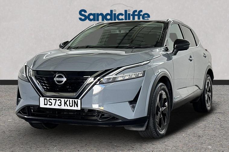 This 2023 Nissan Qashqai h e-POWER Kuro Edition offers an exceptional blend of efficiency and performance, boasting a 1.5 litre petrol hybrid engine. As a Euro 6 compliant vehicle, it represents a commitment to lower emissions. The Kuro Edition trim level ensures a premium experience, complemented by a generous boot space perfect for all your needs. Experience the impressive acceleration of this Qashqai, reaching 0 to 62 miles per hour in just 7.9 seconds. Its fuel economy is a standout feature, achieving an excellent 54 miles per gallon, which indicates it is more economical than many other vehicles in its class. Furthermore, its low CO2 emissions highlight its environmental consideration, making it a smart choice for both your wallet and the planet. This exceptional vehicle boasts a wealth of premium features, including Satellite Navigation, Cruise Control, Bluetooth, Front & Rear Parking Sensors, Rear Parking Camera, Sunroof, Apple CarPlay & Android Auto. The annual road tax is just £195. As a main Ford retailer, our technicians are highly qualified and Ford certified, ensuring that our vehicles are meticulously prepared and maintained. Additionally, we offer a minimum 6-month MOT for added assurance. Don't miss out on this exceptional opportunity. Experience the perfect blend of style, comfort, and cutting-edge technology with the Nissan Qashqai at Sandicliffe Ford Loughborough. This car is Located at our Loughborough site Derby Road Loughborough LE115HN