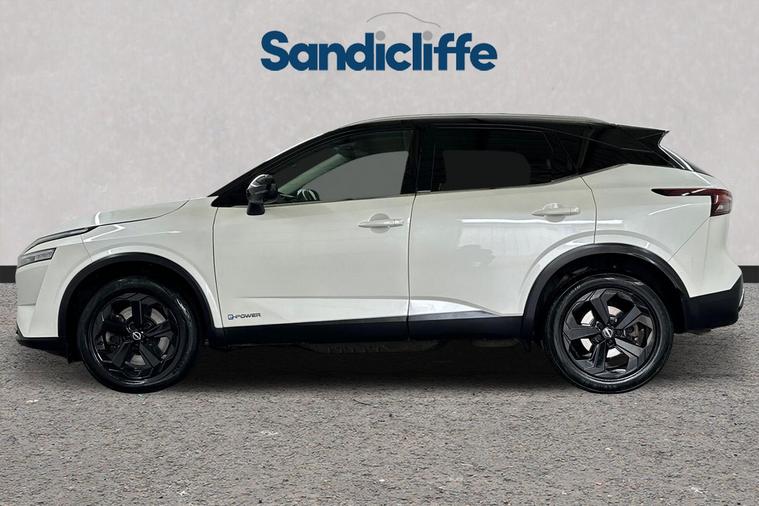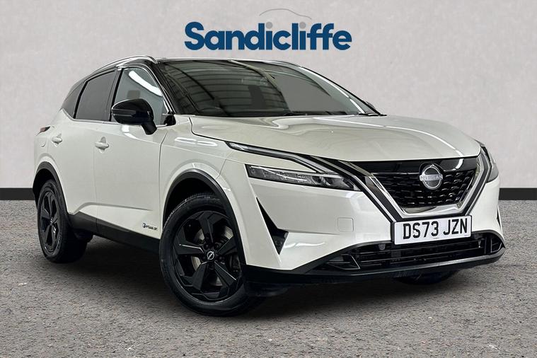 This 2023 Nissan Qashqai h e-POWER Kuro Edition boasts a recent service completed on 2nd June 2025 at 36, 989 miles, offering excellent provenance. As a Euro 6 compliant model, it features a sophisticated 1.5 litre petrol hybrid engine, combining efficiency with performance. The Kuro Edition trim level ensures a well appointed interior and exterior, ready for your everyday journeys. Experience impressive fuel economy with this Qashqai, achieving up to 54 miles per gallon, which is better than many vehicles in its class. You'll also appreciate the generous boot space, providing ample room for shopping or luggage. Furthermore, its low CO2 emissions indicate a more environmentally conscious drive. For those seeking responsive performance, this Qashqai accelerates from 0 to 62 miles per hour in just 7.9 seconds, demonstrating its capability. This exceptional vehicle boasts a wealth of premium features, including Satellite Navigation, Cruise Control, Bluetooth, Front & Rear Parking Sensors, Rear Parking Camera, Sunroof, Apple CarPlay & Android Auto. The annual road tax is just £195. As a main Ford retailer, our technicians are highly qualified and Ford certified, ensuring that our vehicles are meticulously prepared and maintained. Additionally, we offer a minimum 6-month MOT for added assurance. Don't miss out on this exceptional opportunity. Experience the perfect blend of style, comfort, and cutting-edge technology with the Nissan Qashqai at Sandicliffe Ford Loughborough. This car is Located at our Loughborough site Derby Road Loughborough LE115HN