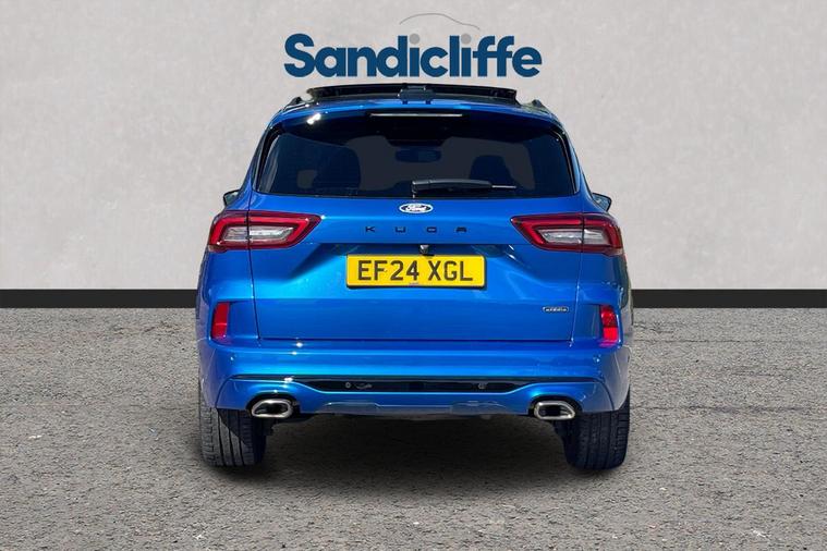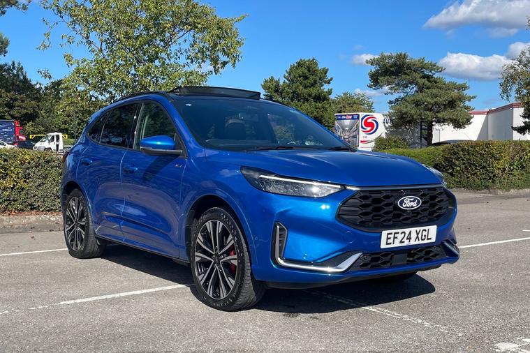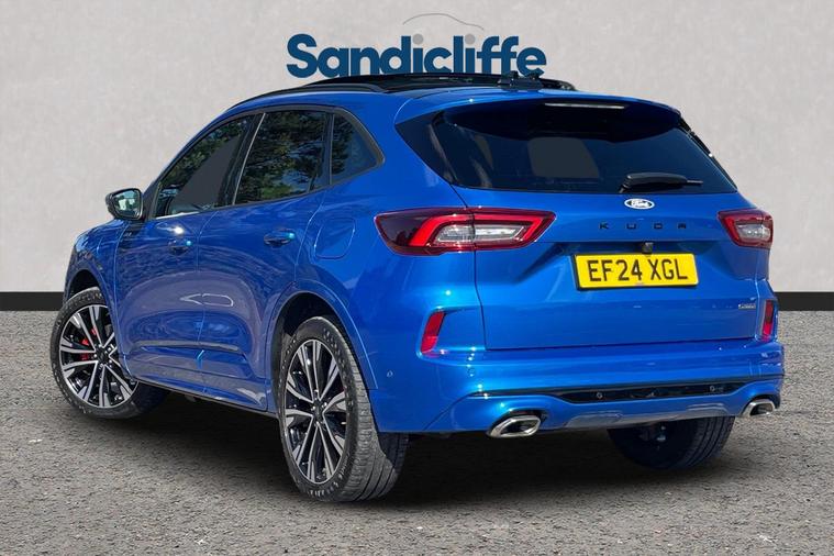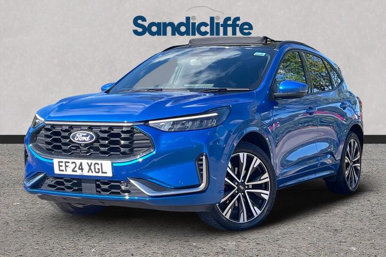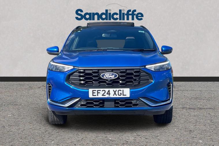 Sandicliffe Nottingham FordStore is proud to present this 2024 Ford Kuga 2.5 Duratec PHEV ST-Line X 5dr, finished in stunning Desert island Blue. This sleek and efficient SUV offers a dynamic driving experience, modern technology, and excellent fuel economy, making it an ideal choice for families and long journeys. Powered by a 2.5-litre Duratec Plug In-hybrid diesel engine, this Kuga delivers strong performance with enhanced efficiency, perfect for both city driving and motorway cruising. This model features 20-inch optional alloy wheels, ST-Line body styling, LED daytime running lights, rear parking sensors, and roof rails. Inside, enjoy a touchscreen infotainment system with Apple CarPlay & Android Auto, Satellite Navigation, Climate Control, Bluetooth connectivity, and Cruise Control, ensuring a comfortable and connected drive. With an insurance group of 20E, this Ford Kuga is a stylish and practical choice. As a trusted retailer, our technicians ensure all our vehicles are prepared to the highest standard. For added peace of mind, we also provide a minimum 6-month MOT. Don’t miss out—experience the 2024 Ford Kuga ST-Line X at Sandicliffe Nottingham FordStore. Contact us today to arrange a test drive!