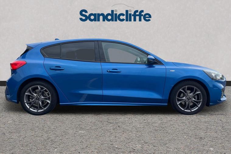 Sandicliffe Nottingham FordStore is proud to present this 2021 Ford Focus 1.0 EcoBoost ST-Line 5dr, finished in stunning Desert Island Blue. This sleek and efficient Hatchback offers a dynamic driving experience, modern technology, and excellent fuel economy, making it an ideal choice for families and long journeys. Powered by a 1.0-litre EcoBoost petrol engine, this Focus delivers strong performance with enhanced efficiency, perfect for both city driving and motorway cruising. This model features 18-inch alloy wheels, ST-Line body styling, LED daytime running lights, and rear parking sensors, enjoy a touchscreen infotainment system with Apple CarPlay & Android Auto, Satellite Navigation, Climate Control, Bluetooth connectivity, and Cruise Control, ensuring a comfortable and connected drive. With an insurance group of 12E, this Ford Focus is a stylish and practical choice. As a trusted retailer, our technicians ensure all our vehicles are prepared to the highest standard. For added peace of mind, we also provide a minimum 6-month MOT. Don’t miss out—experience the 2021 Ford Focus ST-Line at Sandicliffe Nottingham FordStore. Contact us today to arrange a test drive!