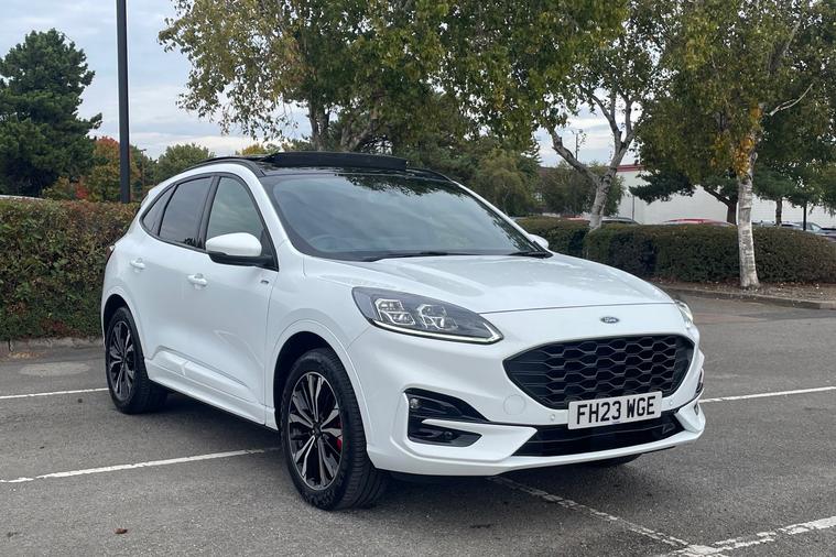 Sandicliffe Nottingham FordStore is proud to present this 2023 Ford Kuga 2.5 Duratec PHEV ST-Line X 5dr, finished in stunning Frozen White. This sleek and efficient SUV offers a dynamic driving experience, modern technology, and excellent fuel economy, making it an ideal choice for families and long journeys. Engine: Powering this little toy is a 2.5-litre Duratec Petrol PHEV engine, this Kuga delivers Plenty of strong performance partnered with enhanced efficiency making it perfect for both city driving and motorway cruising. Tech and other features: This model has equipped, 19-inch alloy wheels, ST-Line eye catching body styling, LED daytime running lights, and rear parking sensors. Inside, enjoy a touchscreen infotainment system with Apple CarPlay & Android Auto, Satellite Navigation, Climate Control, Bluetooth connectivity, and Cruise Control, ensuring a comfortable and connected drive. With an insurance group of 12E, this Ford Kuga is a stylish and practical choice. As a trusted retailer, our technicians ensure all our vehicles are prepared to the highest standard. For added peace of mind, we also provide a minimum 6-month MOT. Don’t miss out—experience the 2023 Ford Kuga ST-Line X at Sandicliffe Nottingham FordStore. Contact us today to arrange a test drive!
