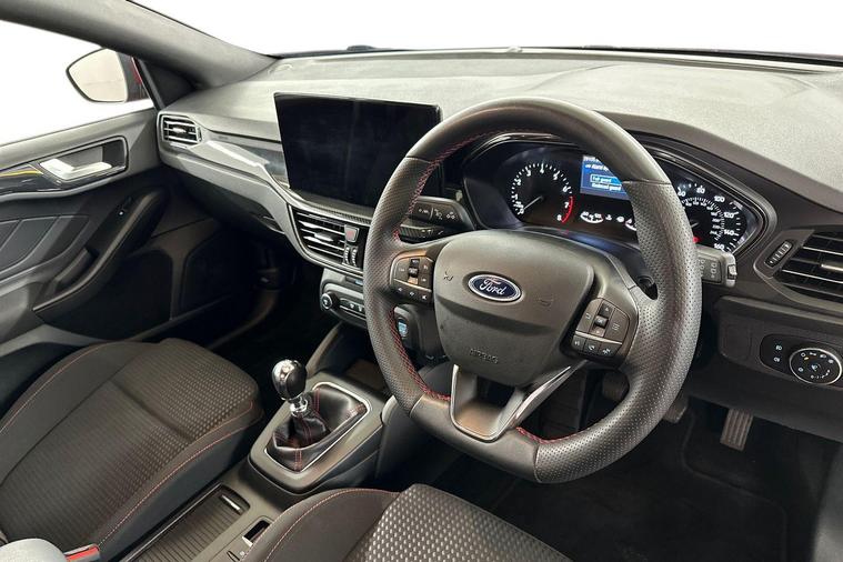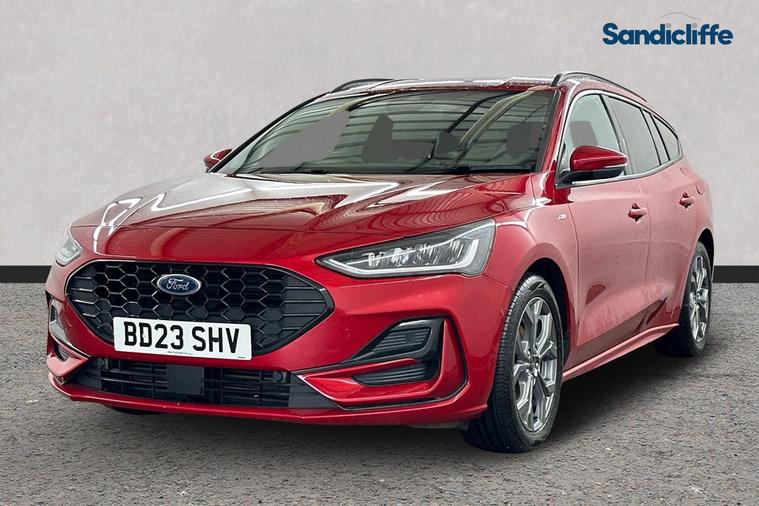 This 2023 Ford Focus T ST Line offers an exceptional blend of sporty design and practical everyday usability. As a Euro 6 compliant model, it showcases Ford's commitment to efficient engineering, powered by a responsive 1.0 litre petrol engine. This particular ST Line trim level is known for its dynamic styling and engaging driving experience, making it a popular choice for those seeking both performance and comfort. With a remarkable fuel economy of 52 miles per gallon, this Focus T ST Line is designed to be kind to your wallet and the environment, boasting low CO2 emissions. Its generous boot space ensures you have ample room for shopping, luggage, or sporting equipment, making it a versatile companion for all your adventures. These highlights demonstrate how this Ford Focus stands out from other vehicles in its class, offering a superior combination of economy, practicality, and driving pleasure. This exceptional vehicle boasts a wealth of premium features, including Satellite Navigation, Cruise Control, Bluetooth, Front & Rear Parking Sensors, Rear Parking Camera, Apple CarPlay & Android Auto. The insurance group for this vehicle is 13E, and the annual road tax is just £195. As a main Ford retailer, our technicians are highly qualified and Ford certified, ensuring that our vehicles are meticulously prepared and maintained. Additionally, we offer a minimum 6-month MOT for added assurance. Don't miss out on this exceptional opportunity. Experience the perfect blend of style, comfort, and cutting-edge technology with the Ford Focus at Sandicliffe Ford Loughborough. This car is Located at our Loughborough site Derby Road Loughborough LE115HN