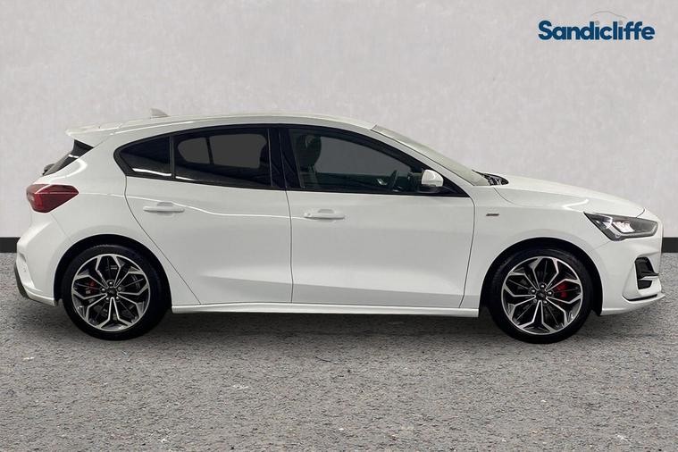 Discover the 2025 Ford Focus T ST-Line X, a sophisticated and efficient choice for your next vehicle. This model boasts a 1.0 litre petrol hybrid engine, offering a blend of performance and economy, and meets the Euro 6 emission standards. The ST-Line X trim level ensures a premium experience with a range of notable features designed for comfort and convenience. The Ford Focus T ST-Line X stands out with its advanced 1.0 litre petrol hybrid powertrain, providing a more refined and environmentally conscious driving experience compared to conventional petrol engines. Its Euro 6 compliance further underscores its commitment to lower emissions. This model is a testament to Ford's dedication to innovation, offering a compelling package for those seeking a modern and capable hatchback. This exceptional vehicle boasts a wealth of premium features, including Satellite Navigation, Cruise Control, Bluetooth, Front & Rear Parking Sensors, Heated Seats, Bang & Olufsen Sound System, Wireless Phone Charger, Apple CarPlay & Android Auto. The annual road tax is just £195. As a main Ford retailer, our technicians are highly qualified and Ford certified, ensuring that our vehicles are meticulously prepared and maintained. Additionally, we offer a minimum 6-month MOT for added assurance. Don't miss out on this exceptional opportunity. Experience the perfect blend of style, comfort, and cutting-edge technology with the Ford Focus at Sandicliffe Ford Loughborough. This car is Located at our Loughborough site Derby Road Loughborough LE115HN
