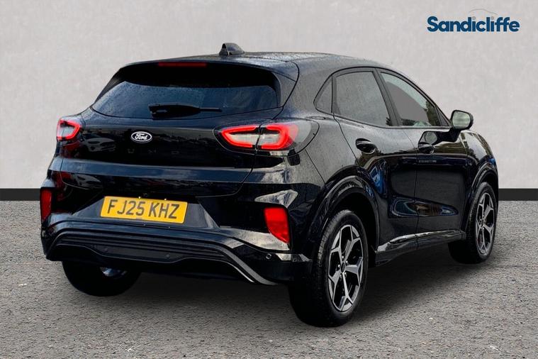 This 2025 Ford Puma ST Line offers a unique opportunity with its pristine condition, having completed its last service at 0 miles. This stylish compact SUV is powered by an efficient 1.0 litre petrol hybrid engine, meeting Euro 6 emission standards. The ST Line trim ensures a sporty aesthetic and enhanced driving experience, making it a compelling choice for those seeking both performance and practicality. The Ford Puma ST Line is designed to impress with its blend of innovative technology and dynamic styling. Its hybrid powertrain contributes to excellent fuel economy, setting it apart from conventional petrol vehicles. The ST Line specification further enhances its appeal, offering a refined interior and a host of features that elevate your driving pleasure. This model represents a smart investment for anyone looking for a modern, capable, and well maintained vehicle.