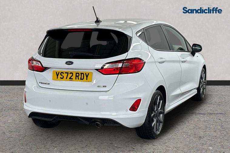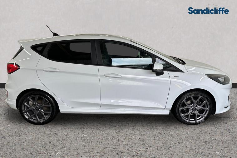 This 2022 Ford Fiesta ST-Line Edition boasts an impeccable service history, with its last service completed on 26th September 2025 at 24, 664 miles. This popular hatchback is equipped with a responsive 1.0L petrol engine and meets Euro 6 emissions standards. The ST-Line Edition trim offers a sporty aesthetic and a dynamic driving experience, making it a compelling choice for those seeking both style and substance in their next vehicle. Experience impressive fuel economy with this Fiesta, achieving a highlight of 58 miles per gallon, which is better than many other vehicles in its class. Furthermore, its low CO2 emissions contribute to a more environmentally conscious drive. For those who appreciate performance, the 0-62mph acceleration in just 9.4 seconds demonstrates its agile nature, offering a spirited yet efficient journey. This exceptional vehicle boasts a wealth of premium features, including Satellite Navigation, Cruise Control, Bluetooth, Rear Parking Sensors, Drive Modes, Auto Start Stop, Apple CarPlay & Android Auto. The insurance group for this vehicle is 15E, and the annual road tax is just £195. As a main Ford retailer, our technicians are highly qualified and Ford certified, ensuring that our vehicles are meticulously prepared and maintained. Additionally, we offer a minimum 6-month MOT for added assurance. Don't miss out on this exceptional opportunity. Experience the perfect blend of style, comfort, and cutting-edge technology with the Ford Fiesta at Sandicliffe Ford Loughborough. This car is Located at our Loughborough site Derby Road Loughborough LE115HN