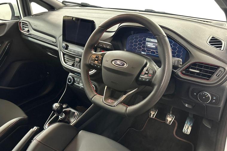 This 2023 Ford Fiesta ST-3 boasts an impressive service history, with its last service completed on 24th October 2025 at 21, 808 miles, ensuring it is well maintained. This particular model is the T ST-3 variant, powered by a 1.5 litre petrol engine and meeting Euro 6 emission standards. This exceptional vehicle boasts a wealth of premium features, including Satellite Navigation, Cruise Control, Bluetooth, Rear Parking Sensors, Rear Parking Camera, Apple CarPlay & Android Auto. Experience exhilarating performance with this Fiesta ST-3, which accelerates from 0 to 62 miles per hour in just 6.5 seconds. This rapid acceleration demonstrates its superior capability compared to other vehicles in its class, offering a truly dynamic driving experience. At Sandicliffe, we’re proud to be a family-owned business that’s been supporting motorists across the East Midlands for over 75 years representing BYD, Ford, Mazda and MG. Our commitment to quality, care, and community means you can buy with complete confidence, our technicians are highly qualified ensuring that our vehicles are meticulously prepared and maintained. Additionally, we offer a minimum 6-month MOT for added assurance. This car is Located at our Loughborough site Derby Road Loughborough LE115HN