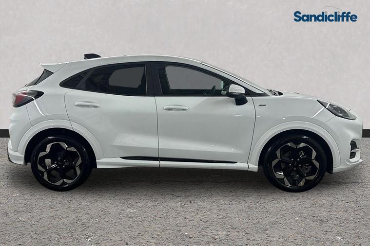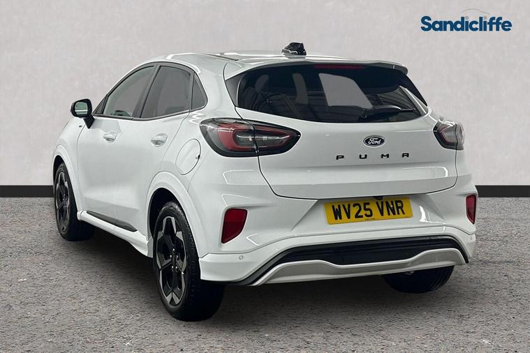 This 2025 Ford Puma ST-Line X is a superb example, having had only one owner from new. This stylish compact SUV features a responsive 1.0L Petrol Hybrid engine, meeting Euro 6 emissions standards. With its MOT valid until February 2028, this vehicle offers peace of mind for years to come. This exceptional vehicle boasts a wealth of premium features, including Satellite Navigation, Cruise Control, Bluetooth, Rear Parking Sensors, Rear Parking Camera, Bang & Olufsen Sound System, Wireless Phone Charger, Apple CarPlay & Android Auto. The ST-Line X trim level enhances the already impressive Puma, offering a sporty aesthetic and a host of desirable features. This particular model showcases the thoughtful design and engineering that Ford is known for, providing a driving experience that is both engaging and efficient. Its hybrid technology contributes to lower running costs and a reduced environmental impact, making it a sensible choice for the modern driver. At Sandicliffe, we’re proud to be a family-owned business that’s been supporting motorists across the East Midlands for over 75 years representing BYD, Ford, Mazda and MG. Our commitment to quality, care, and community means you can buy with complete confidence, our technicians are highly qualified ensuring that our vehicles are meticulously prepared and maintained. Additionally, we offer a minimum 6-month MOT for added assurance. This car is Located at our Loughborough site Derby Road Loughborough LE115HN