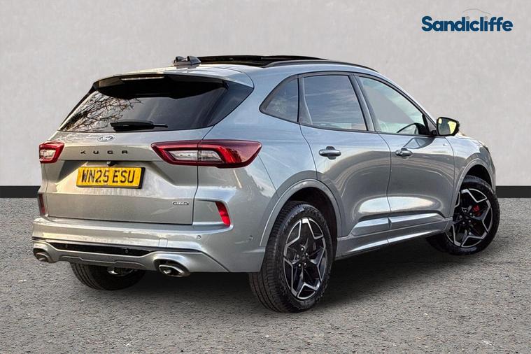 Sandicliffe Nottingham FordStore is proud to present this 2025 Ford Kuga 2.5 Duratec Phev ST-Line X 5dr, finished in stunning Solar Silver. This sleek and efficient SUV offers a dynamic driving experience, modern technology, and excellent fuel economy, making it an ideal choice for families and long journeys. Engine: Powering this Vehicle is a 2.5-litre Duratec Plug-In Hybrid engine, this Kuga delivers Plenty of strong performance partnered with enhanced efficiency making it perfect for both city driving and motorway cruising. Tech and other features: This model has equipped, 18-inch alloy wheels, ST-Line eye catching body styling, LED daytime running lights, Sunroof and Surround parking sensors. Inside, enjoy a touchscreen infotainment system with Apple CarPlay & Android Auto, Satellite Navigation, Climate Control, Bluetooth connectivity, and Cruise Control, ensuring a comfortable and connected drive. With an insurance group of 24E, this Ford Kuga is a stylish and practical choice. As a trusted retailer, our technicians ensure all our vehicles are prepared to the highest standard. For added peace of mind, we also provide a minimum 6-month MOT. Don’t miss out—experience the 2025 Ford Kuga ST-Line X at Sandicliffe Nottingham FordStore. Contact us today to arrange a test drive!