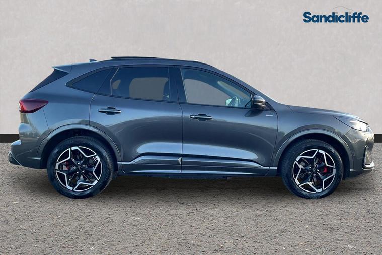 Sandicliffe Nottingham FordStore is proud to present this 2025 Ford Kuga 2.5 Duratec Phev ST-Line X 5dr, finished in stunning Solar Silver. This sleek and efficient SUV offers a dynamic driving experience, modern technology, and excellent fuel economy, making it an ideal choice for families and long journeys. Engine: Powering this Vehicle is a 2.5-litre Duratec Plug-In Hybrid engine, this Kuga delivers Plenty of strong performance partnered with enhanced efficiency making it perfect for both city driving and motorway cruising. Tech and other features: This model has equipped, 18-inch alloy wheels, ST-Line eye catching body styling, LED daytime running lights, Sunroof and Surround parking sensors. Inside, enjoy a touchscreen infotainment system with Apple CarPlay & Android Auto, Satellite Navigation, Climate Control, Bluetooth connectivity, and Cruise Control, ensuring a comfortable and connected drive. With an insurance group of 24E, this Ford Kuga is a stylish and practical choice. As a trusted retailer, our technicians ensure all our vehicles are prepared to the highest standard. For added peace of mind, we also provide a minimum 6-month MOT. Don’t miss out—experience the 2025 Ford Kuga ST-Line X at Sandicliffe Nottingham FordStore. Contact us today to arrange a test drive!