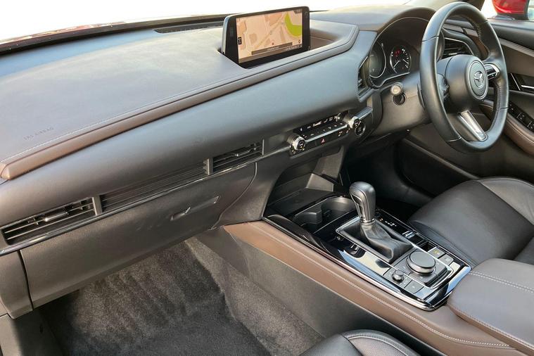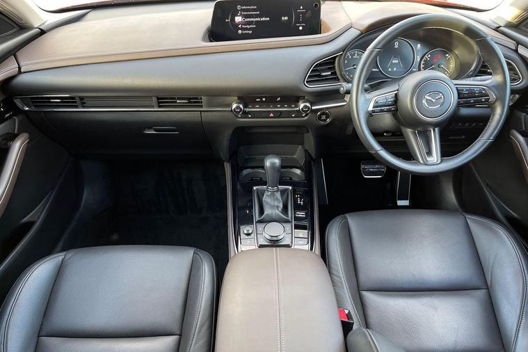 Mazda CX-30 2.0 e-Skyactiv G MHEV Takumi 5-Door Automatic in Soul Red Crystal Experience refined elegance and advanced technology with the Mazda CX-30 Takumi edition, finished in the stunning Soul Red Crystal exterior. Inside, you’ll find a luxurious leather interior complemented by an exceptional BOSE audio system for an immersive sound experience. Enjoy the convenience of electric seats, a rear-view camera for added safety, and heated seats along with a heated steering wheel for ultimate comfort in all seasons. Stay connected on the go with DAB radio and full smartphone compatibility, while cruise control ensures smooth and effortless driving. To find out more or arrange a viewing, contact the Mazda Sales Team at Leicester today and discover the perfect blend of style, innovation, and performance.