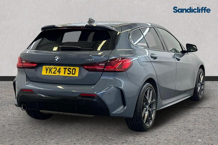 This 2024 BMW 1 Series 118i M Sport (LCP) boasts a recent full service completed on 23rd September 2025 at 30, 589 miles, ensuring it is in excellent condition. This Euro 6 compliant model features a responsive 1.5 litre petrol engine and is presented in the sporty M Sport trim, offering a dynamic driving experience. This exceptional vehicle boasts a wealth of premium features, including Satellite Navigation, Cruise Control, Bluetooth, Front & Rear Parking Sensors, Harman Kardon Sound System, Heated Seats, Apple CarPlay & Android Auto. The 118i M Sport excels with its impressive acceleration, achieving 0 to 62mph in just 8.8 seconds, a performance that sets it apart from many in its class. Furthermore, this BMW 1 Series offers generous boot space, making it a practical choice for everyday use and longer journeys alike, combining its spirited performance with everyday usability. At Sandicliffe, we’re proud to be a family-owned business that’s been supporting motorists across the East Midlands for over 75 years representing BYD, Ford, Mazda and MG. Our commitment to quality, care, and community means you can buy with complete confidence, our technicians are highly qualified ensuring that our vehicles are meticulously prepared and maintained. Additionally, we offer a minimum 6-month MOT for added assurance. This car is Located at our Loughborough site Derby Road Loughborough LE115HN