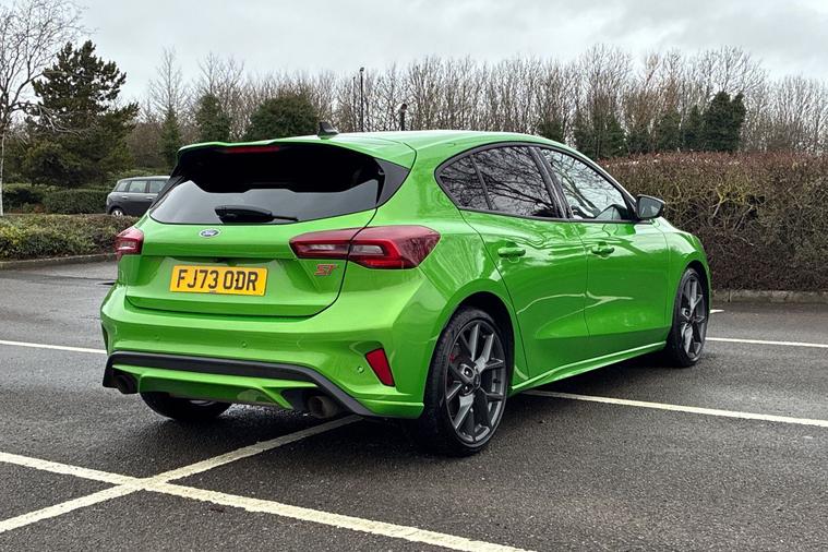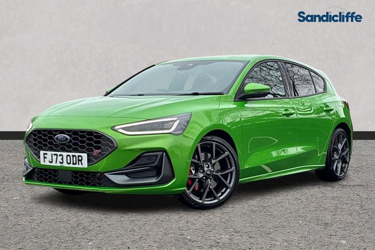 Sandicliffe Nottingham FordStore is proud to present this 2023 Ford Focus 2.3 EcoBoost ST 5dr, finished in stunning Green . This sleek and efficient Hot Hatch offers a dynamic driving experience, Extreme Power output, and practicality making it an ideal choice for families and Sporting Driver focused enjoyment. Engine: Powering this little toy is a 2.3-litre EcoBoost Petrol engine, this Focus delivers Plenty of strong performance partnered with enhanced efficiency making it perfect for both city driving and motorway cruising. Tech and other features: This model has equipped, 19-inch alloy wheels, ST aggressive eye catching body styling, LED daytime running lights, and surround parking sensors. Inside, enjoy a touchscreen infotainment system with Apple CarPlay & Android Auto, Satellite Navigation, Climate Control, Bluetooth connectivity, and Cruise Control, ensuring a comfortable and connected drive. With an insurance group of 12E, this Ford Focus is a stylish and practical choice. As a trusted retailer, our technicians ensure all our vehicles are prepared to the highest standard. For added peace of mind, we also provide a minimum 6-month MOT. Don’t miss out—experience the 2023 Ford Focus ST at Sandicliffe Nottingham FordStore. Contact us today to arrange a test drive!