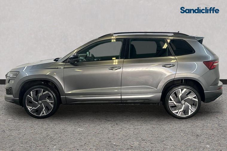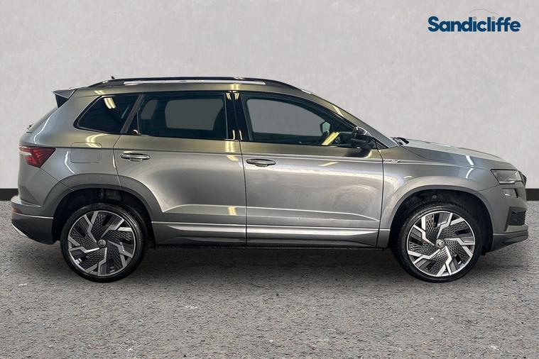 This 2022 Skoda Karoq TSI SportLine boasts an impressive service history, with its last service completed on 22nd December 2025 at 55, 397 miles. This well maintained Euro 6 compliant 1.5 litre petrol engine offers a responsive drive, reaching 0-60mph in just 8.7 seconds. The SportLine trim level ensures a stylish appearance, and you'll appreciate the generous boot space, perfect for all your luggage and shopping needs. This exceptional vehicle boasts a wealth of premium features, including Satellite Navigation, Cruise Control, Bluetooth, Front & Rear Parking Sensors, Rear Parking Camera, Heated Seats, Sunroof, Apple CarPlay & Android Auto. The Skoda Karoq TSI SportLine stands out with its excellent fuel efficiency, indicated by its low CO2 emissions, making it a more economical choice for your journeys. The brisk acceleration of 0-60mph in 8.7 seconds demonstrates its performance capabilities, offering a more dynamic driving experience compared to many other vehicles in its class. This combination of practicality, performance, and efficiency makes the Karoq a compelling option. At Sandicliffe, we’re proud to be a family-owned business that’s been supporting motorists across the East Midlands for over 75 years representing BYD, Ford, Mazda and MG. Our commitment to quality, care, and community means you can buy with complete confidence, our technicians are highly qualified ensuring that our vehicles are meticulously prepared and maintained. Additionally, we offer a minimum 6-month MOT for added assurance. This car is Located at our Loughborough site Derby Road Loughborough LE115HN