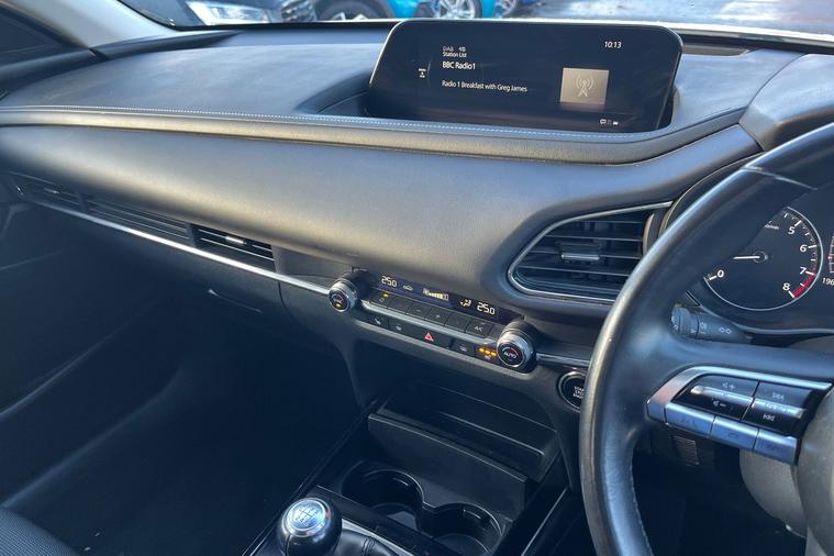 Discover the perfect blend of style, efficiency and refined comfort with this Mazda CX‑30 2.0 e‑Skyactiv G MHEV Sport Lux 5‑Door. Finished to Mazda’s high Sport Lux specification, this impressive crossover delivers a premium driving experience powered by Mazda’s advanced mild hybrid technology, offering responsive performance with excellent fuel efficiency. This well‑maintained example benefits from low mileage and comes with a full service history. The interior is thoughtfully designed with intuitive technology, ensuring every journey is both comfortable and enjoyable. Cruise control enhances longer drives by reducing fatigue, while the rear parking camera makes manoeuvring and parking effortless in all situations. Practicality is equally impressive, thanks to the power lift tailgate, allowing easy access to the spacious boot at the touch of a button—ideal for busy lifestyles, family trips or everyday errands. With its sleek exterior design, elevated driving position and refined ride quality, the CX‑30 stands out as a sophisticated yet versatile vehicle. This Mazda CX‑30 Sport Lux represents an excellent opportunity to own a modern, reliable and beautifully engineered vehicle that delivers both driving pleasure and everyday usability Contact the Mazda team in Leicester today to find out more and arrange your test drive.