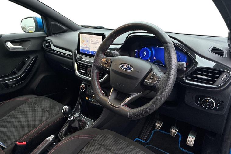 Sandicliffe Nottingham FordStore is proud to present this 2021 Ford Puma 1.0 EcoBoost ST-Line 5dr, finished in stunning Desert Island Blue. This sleek and efficient Compact SUV offers a dynamic driving experience, modern technology, and excellent fuel economy, making it an ideal choice for families and long journeys. Engine: Powering this Vehicle is a 1.0-litre EcoBoost Petrol engine, this Puma delivers Plenty of strong performance partnered with enhanced efficiency making it perfect for both city driving and motorway cruising. Tech and other features: This model has equipped, 18-inch alloy wheels, ST-Line eye catching body styling, LED daytime running lights, and rear parking sensors. Inside, enjoy a touchscreen infotainment system with Apple CarPlay & Android Auto, Satellite Navigation, Climate Control, Bluetooth connectivity, and Cruise Control, ensuring a comfortable and connected drive. With an insurance group of 12E, this Ford Puma is a stylish and practical choice. As a trusted retailer, our technicians ensure all our vehicles are prepared to the highest standard. For added peace of mind, we also provide a minimum 6-month MOT. Don’t miss out—experience the 2018 Ford Fiesta ST-Line at Sandicliffe Nottingham FordStore. Contact us today to arrange a test drive!