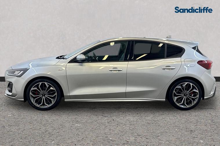 This 2023 Ford Focus T ST-Line X boasts a recent full service completed on 1st September 2025 at 36, 671 miles, ensuring it is in excellent condition. This Euro 6 compliant 1.0 litre petrol model offers a sporty ST-Line X trim, combining stylish aesthetics with efficient performance. This exceptional vehicle boasts a wealth of premium features, including Satellite Navigation, Cruise Control, Bluetooth, Front & Rear Parking Sensors, Bang & Olufsen Sound System, Heated Seats, Apple CarPlay & Android Auto. The Ford Focus T ST-Line X is designed for an engaging driving experience, accelerating from 0 to 62 miles per hour in just 10.2 seconds. This performance metric indicates a responsiveness that sets it apart from other vehicles in its class, making it a compelling choice for those seeking both practicality and a dynamic drive. At Sandicliffe, we’re proud to be a family-owned business that’s been supporting motorists across the East Midlands for over 75 years representing BYD, Ford, Mazda and MG. Our commitment to quality, care, and community means you can buy with complete confidence, our technicians are highly qualified ensuring that our vehicles are meticulously prepared and maintained. Additionally, we offer a minimum 6-month MOT for added assurance. This car is Located at our Loughborough site Derby Road Loughborough LE115HN