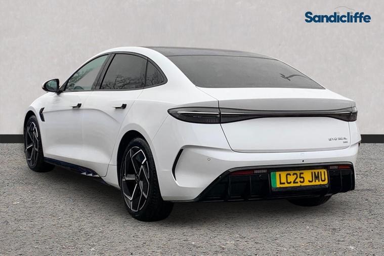 This 2025 BYD Seal Excellence boasts exceptionally low mileage for its age, having covered just 3634 miles. This electric saloon, presented in Excellence trim, features a powerful Four Wheel Drive system and a substantial 83 kWh battery, offering a maximum range of 323 miles on a full charge. Experience exhilarating performance with the BYD Seal Excellence, capable of accelerating from 0 to 62 miles per hour in a swift 3.8 seconds, demonstrating its superior capability compared to many vehicles in its class. When you need to recharge, the battery can reach 80% capacity in as little as 42 minutes at a public charging station, ensuring you can get back on the road quickly.