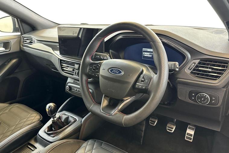 This 2023 Ford Focus T ST-Line X has recently undergone its last service on 5th June 2025 at 36, 247 miles, ensuring it is in excellent condition. This Euro 6 compliant 1.0 litre petrol model offers a compelling blend of performance and practicality. As a T ST-Line X variant, it benefits from the sporty ST-Line X trim, providing a refined driving experience. This exceptional vehicle boasts a wealth of premium features, including Satellite Navigation, Cruise Control, Bluetooth, Front & Rear Parking Sensors, Bang & Olufsen Sound System, Heated Seats, Apple CarPlay & Android Auto. The Ford Focus T ST-Line X stands out with its impressive fuel economy, achieving a highlight of 52 miles per gallon, which is better than many other vehicles in its class. It also boasts a large boot space, offering ample room for luggage or shopping, and features low CO2 emissions, making it a more environmentally conscious choice. At Sandicliffe, we’re proud to be a family-owned business that’s been supporting motorists across the East Midlands for over 75 years representing BYD, Ford, Mazda and MG. Our commitment to quality, care, and community means you can buy with complete confidence, our technicians are highly qualified ensuring that our vehicles are meticulously prepared and maintained. Additionally, we offer a minimum 6-month MOT for added assurance. This car is Located at our Loughborough site Derby Road Loughborough LE115HN